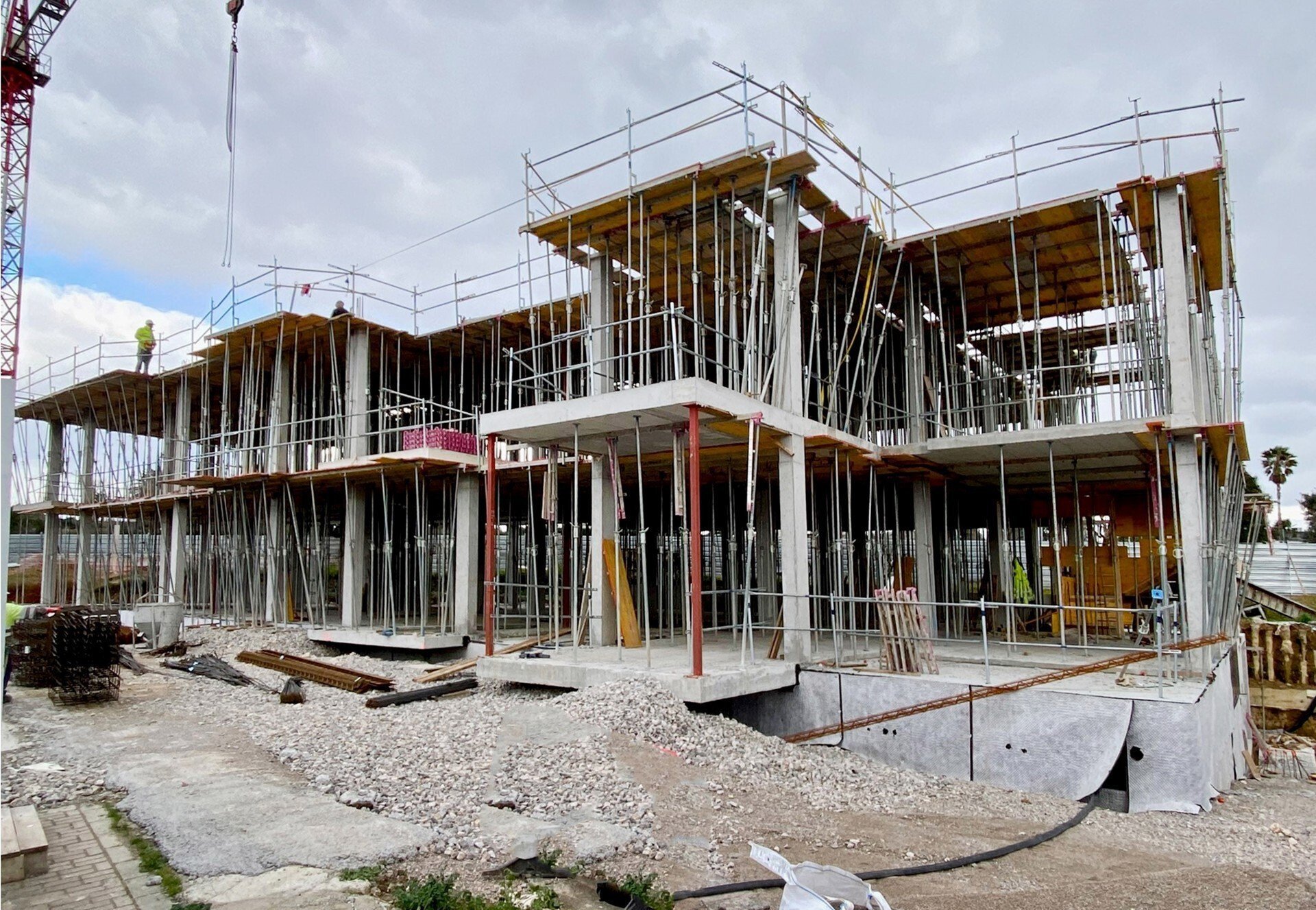 Las obras, que en la actualidad se centran en el tercer forjado de la estructura, comenzaron el pasado mes de agosto y hasta la fecha han incluido los trabajos de estabilización de taludes de la zona norte de la parcela mediante micropilotes, la excavación para el sótano que albergará el aparcamiento y los cuartos técnicos del edificio, la cimentación y los muros de sótano.