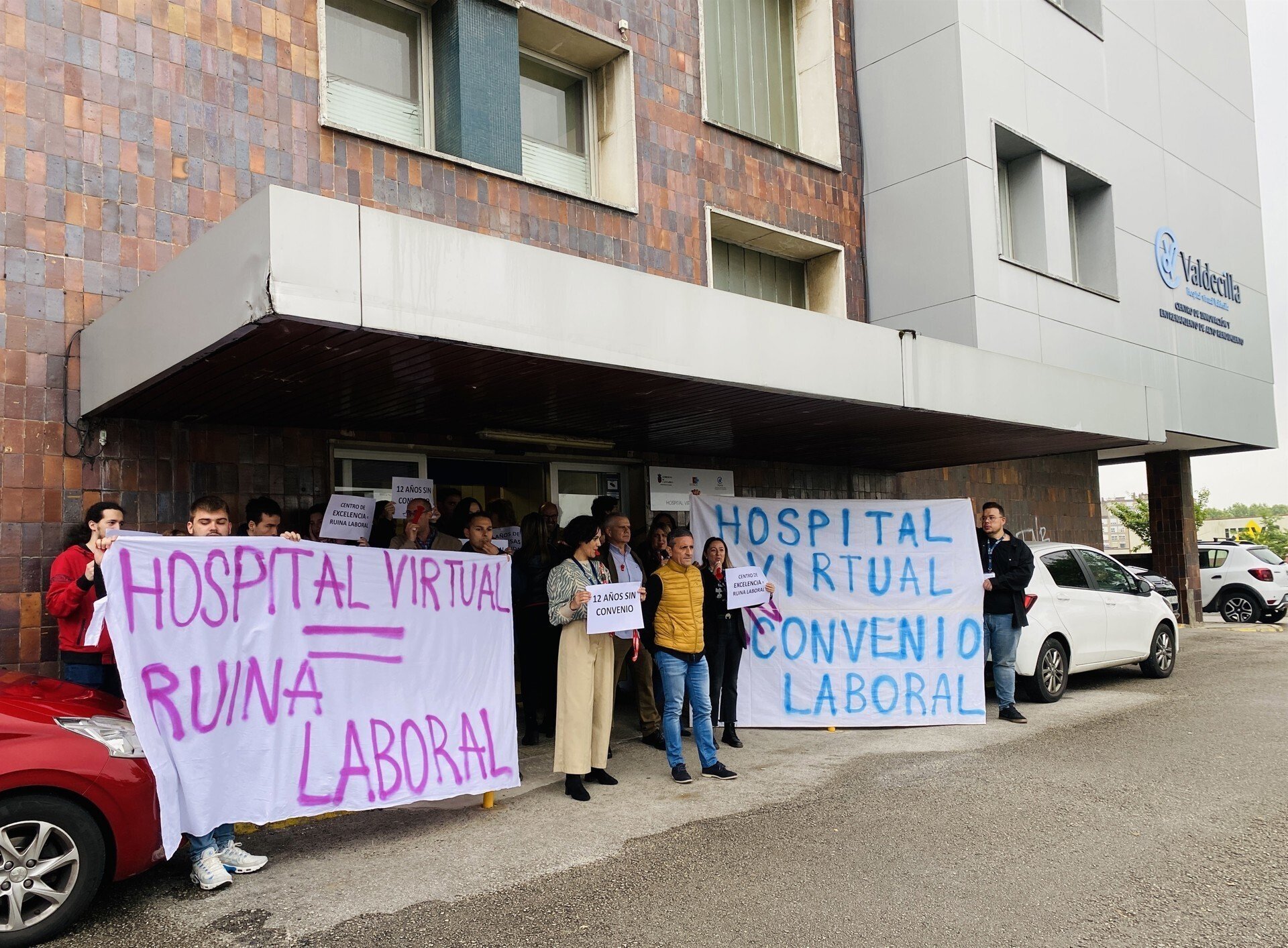 La plantilla del Hospital Virtual Valdecilla se ha concentrado este miércoles a las puertas del edificio donde se ubica el organismo para reivindicar la negociación "real" de un convenio colectivo y una adaptación de las retribuciones "acorde a los salarios del resto del personal público" del Gobierno de Cantabria.