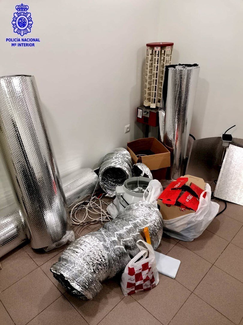 Tras lograr entrar en la vivienda, cuya puerta de acceso se encontraba apuntalada desde el interior, los agentes comprobaron que no había ocupantes y vieron varias habitaciones con las paredes forradas de plástico térmico y un conducto de ventilación situado en el techo, así como varias lámparas, cableado y herramientas, que demostraban que el piso se estaba preparando para albergar una plantación indoor de marihuana, utilizando para ello una conexión fraudulenta de electricidad.