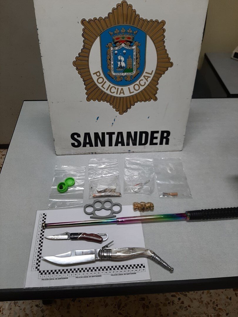 Durante el transcurso de varias intervenciones la Policía de Santander ha registrado a 13 personas, incautándoles diversas sustancias supuestamente estupefacientes (anfetaminas, marihuana,hachís y/o cocaína) y a otras cinco personas, con un puño americano simulando un anillo, una defensa extensible, una navaja de muelles, un puño americano y una navaja, respectivamente.