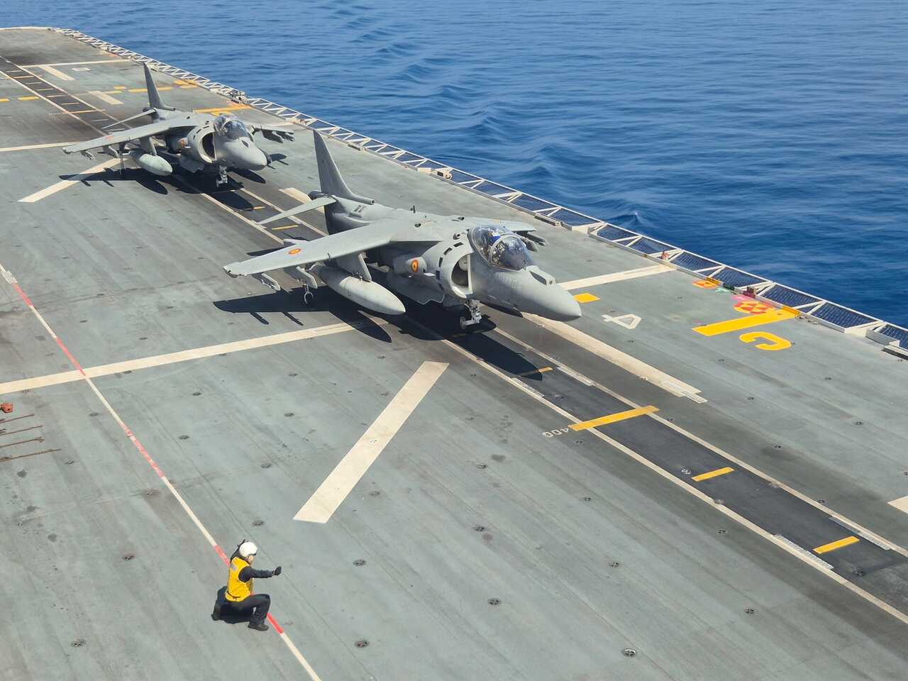 El 'Juan Carlos I' es el mayor buque de guerra construido en España, con 231 metros de eslora y más de 26.000 toneladas de desplazamiento. Diseñado como portaaviones y buque anfibio, puede operar aeronaves de despegue corto y aterrizaje vertical como los AV-8B Plus Harrier II, así como distintos tipos de helicópteros.