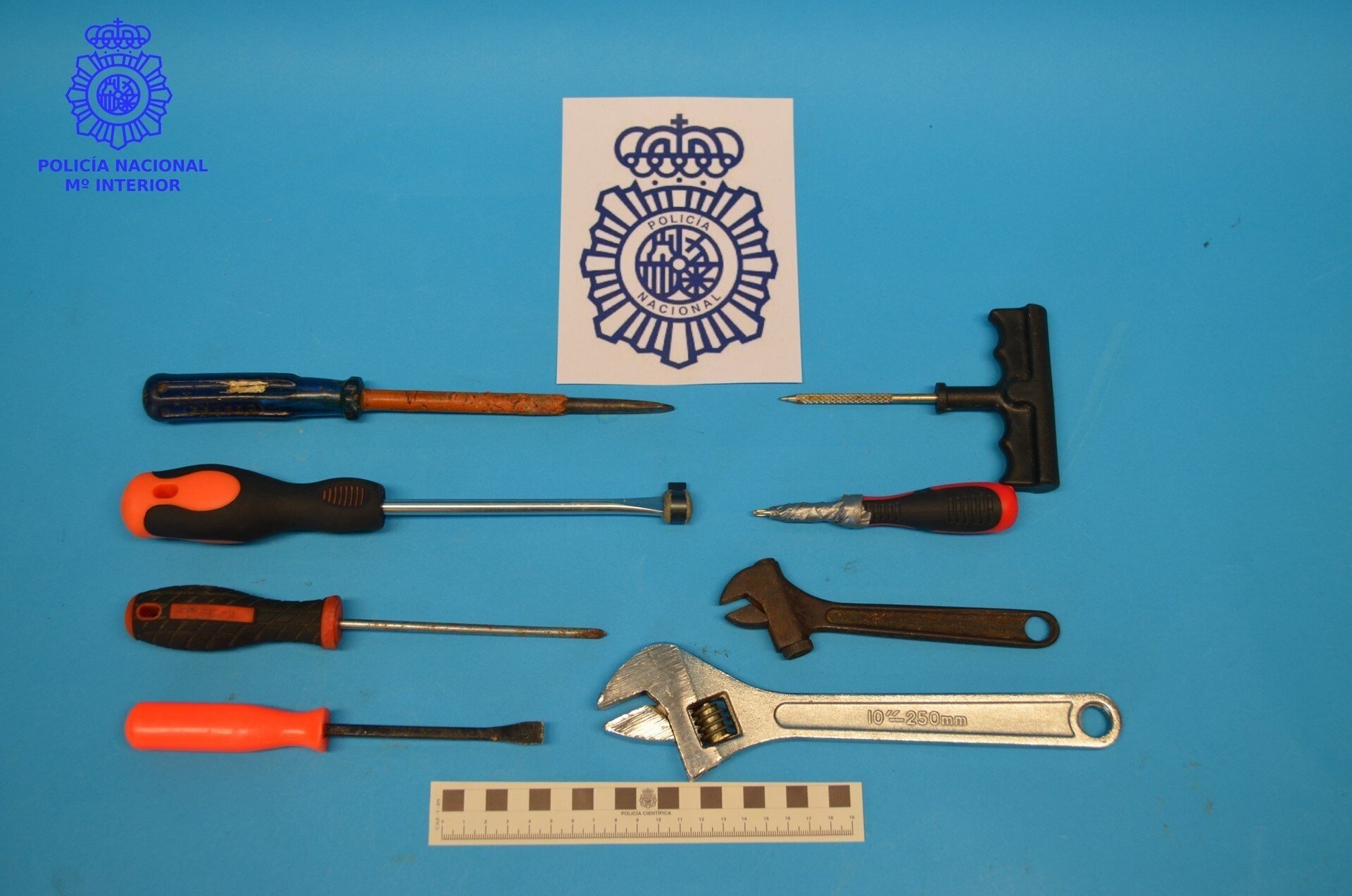 Al día siguiente, los policías procedieron a la entrada y registro de su domicilio, donde hallaron múltiples herramientas presuntamente utilizadas para el robo con fuerza en los diferentes negocios afectados, así como diversa cantidad de dinero en moneda extranjera proveniente de los mismos.