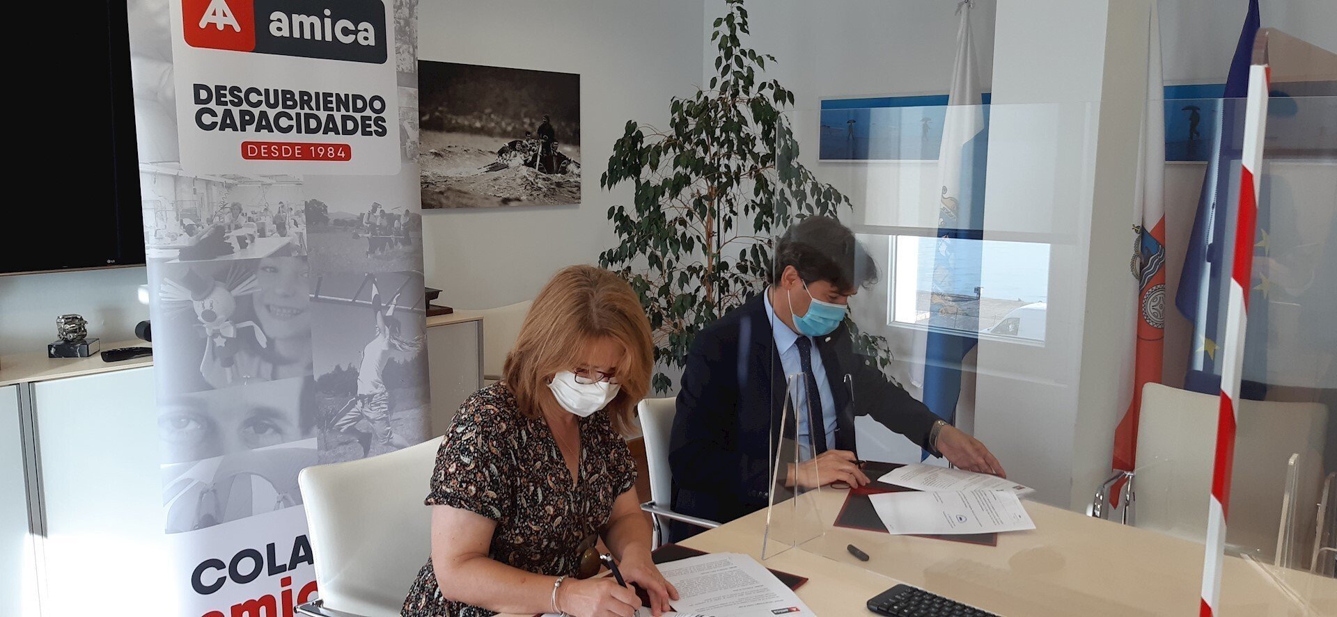 El presidente de la APS, Jaime González, y la presidenta de Amica, Mercedes del Hoyo, han firmado hoy este protocolo que establece un marco de actuación para desarrollar acciones conjuntas que permitan avanzar en el cumplimiento de los Objetivos de Desarrollo Sostenible (ODS) en materia medio ambiental y social y, en concreto, en la promoción de la participación social de las personas con discapacidad y la generación de oportunidades de empleo vinculadas al ámbito medio ambiental.