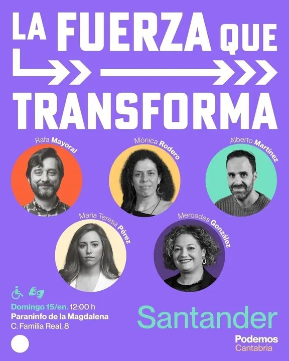 Mayoral y Pérez compartirán el escenario con la coordinadora de Podemos Cantabria, Mercedes González; la candidata a la presidencia de Cantabria, Mónica Rodero; y el concejal y el candidato de Podemos en Castro Urdiales, Alberto Martínez.
