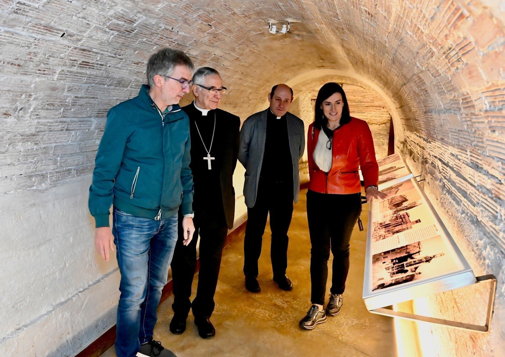 El refugio antiaéreo de la Catedral de Santander, denominado 'Frontón del Cristo' y descubierto durante las obras que han puesto en valor las Dependencias Capitulares de la Catedral y su habilitación como museo, Archivo Diocesano y sala de consultas, abre al público desde hoy, sumándose a los recursos del Anillo Cultural.