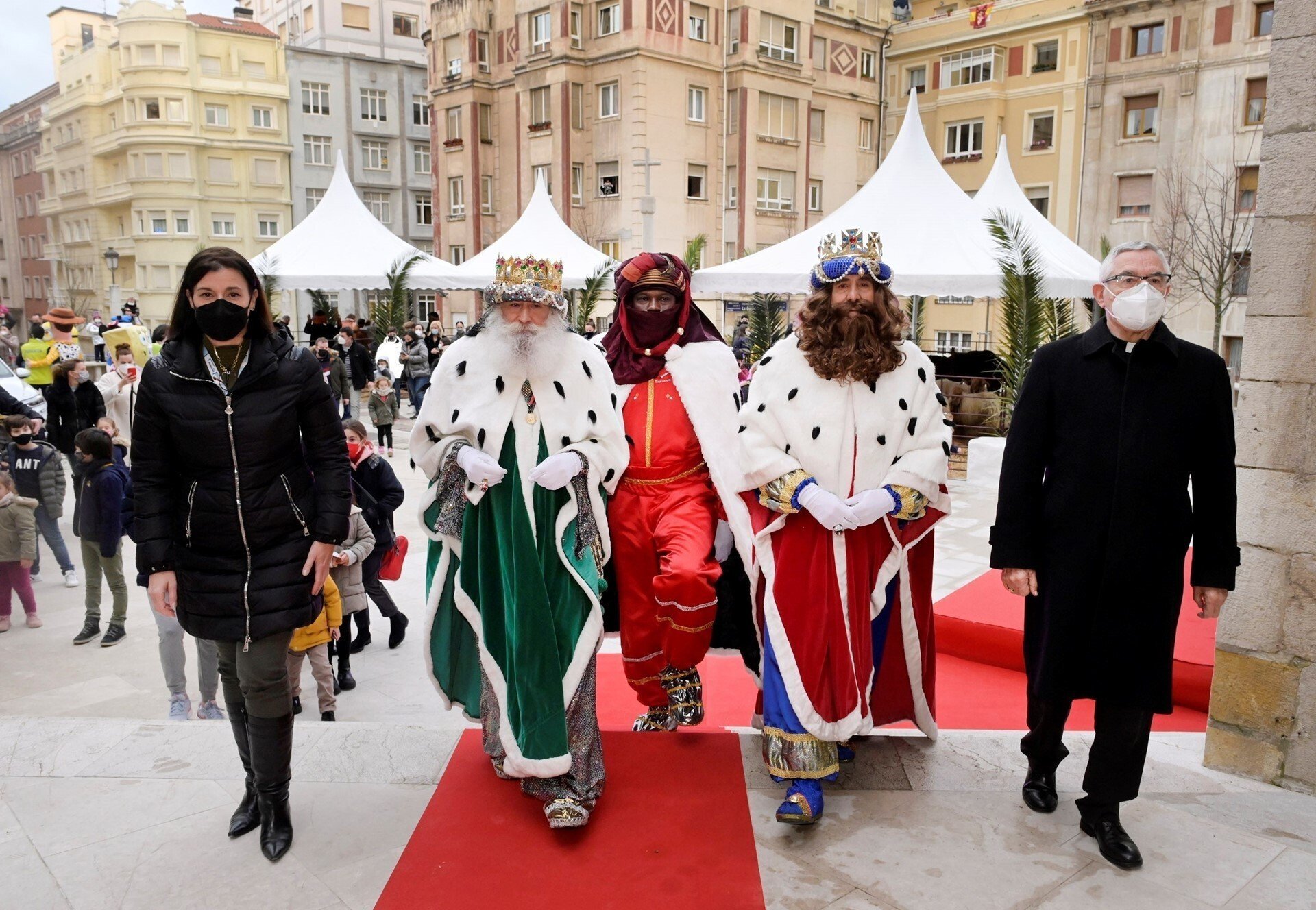 La alcaldesa de Santander, Gema Igual, ha presidido junto al obispo Manuel Sánchez Monge la recepción a los Reyes Magos de Oriente, que desde las 09.00 horas reciben a los más pequeños y a sus familias en el claustro de la catedral.
