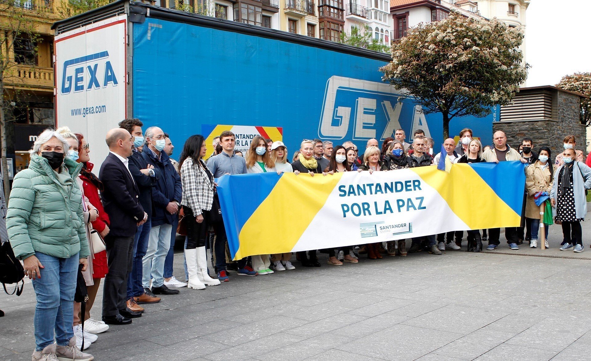 La plaza del Ayuntamiento de Santander ha acogido este viernes un nuevo minuto de silencio en señal de repulsa hacia la guerra en Ucrania, en el que han tomado parte miembros de la Corporación, representantes de la Asociación de Ucranianos y ciudadanos.