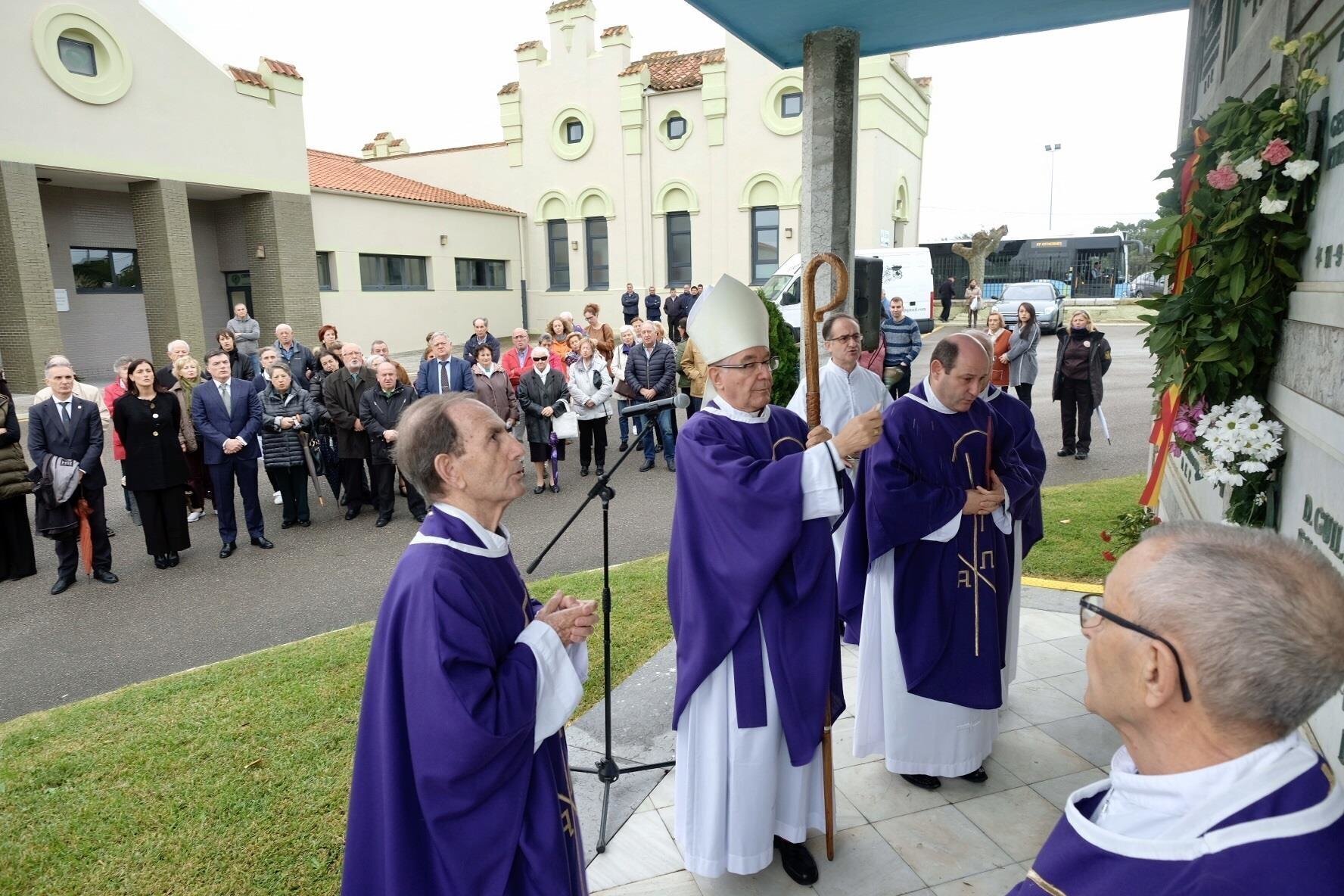 La regidora ha participado también en el tradicional responso del Día de los Fieles Difuntos, celebrado ante el panteón de personalidades ilustres de Ciriego y oficiado por el obispo de Santander Manuel Sánchez Monge.