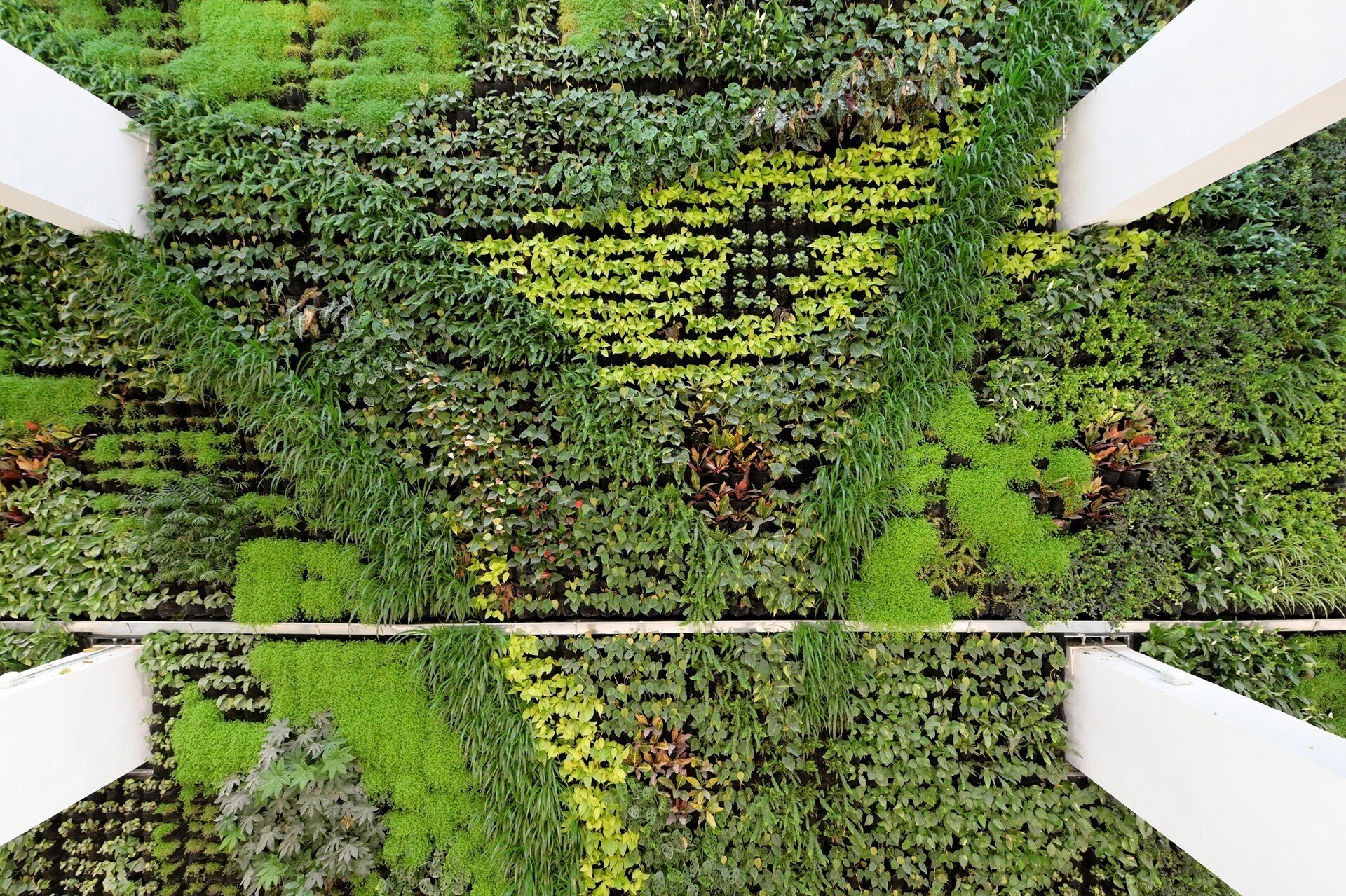 Este lienzo verde y vivo ha sido realizado con 22.300 plantas de 26 especies diferentes, todas tropicales y subtropicales, que han sido elegidas según un estudio de la luz del sol e inspiradas en las pinturas de Jackson Pollock.