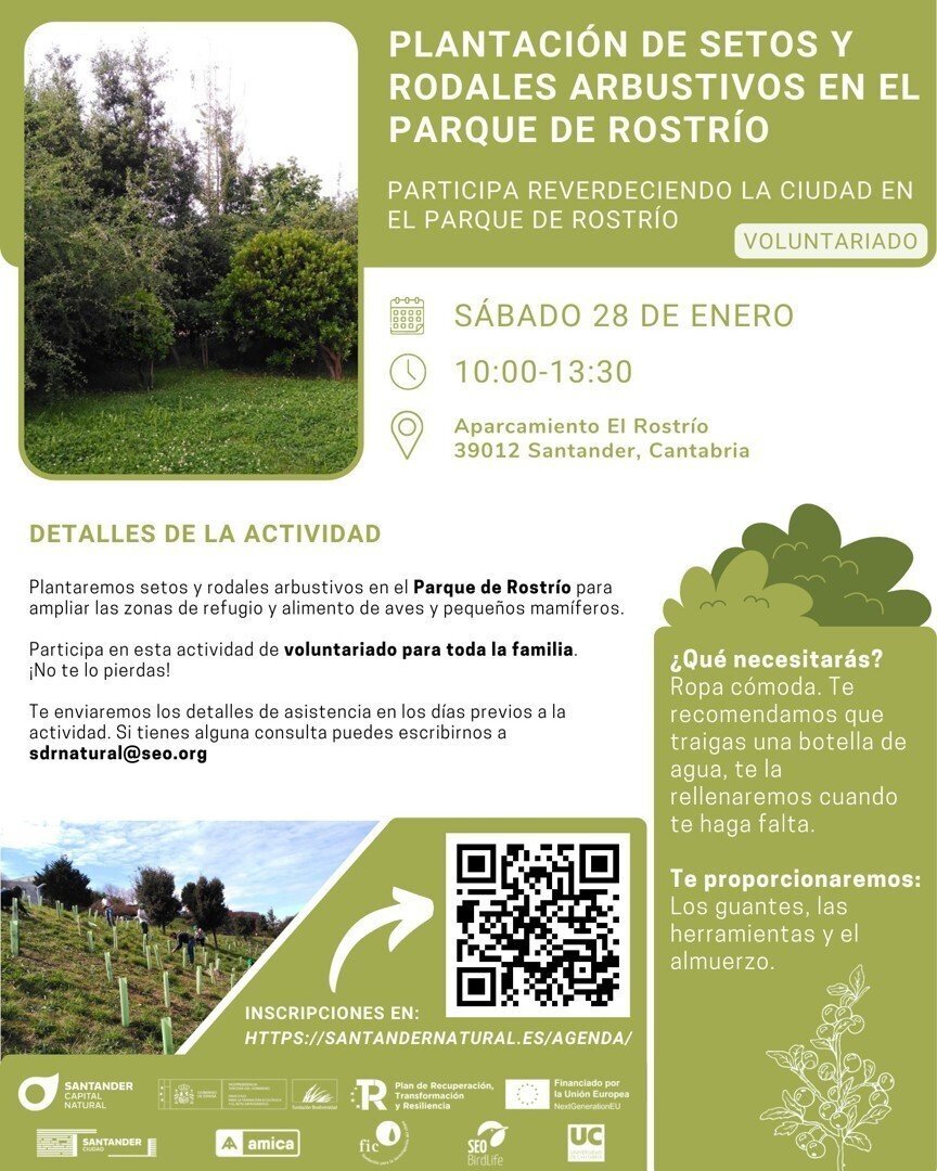 La actividad consistirá en plantar árboles y arbolillos en grupos o rodales con el fin de crear un mosaico de arbustos, setos y praderas que servirán de lugar de refugio y sus frutos serán fuente de alimento para las pequeñas aves de la campiña de Santander.