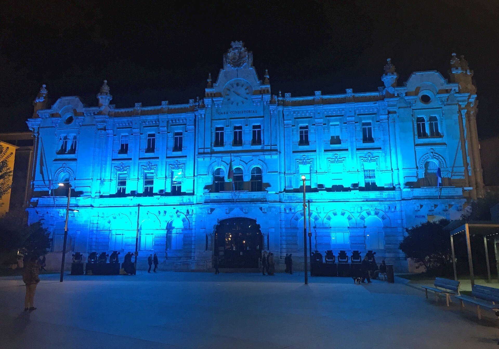 La fachada del Ayuntamiento de Santander se iluminará de azul este sábado 14, entre las 20.00 y las 23.00 horas, para visibilizar y sensibilizar a la sociedad de las barreras que tienen que superar a diario las personas que padecen diabetes.