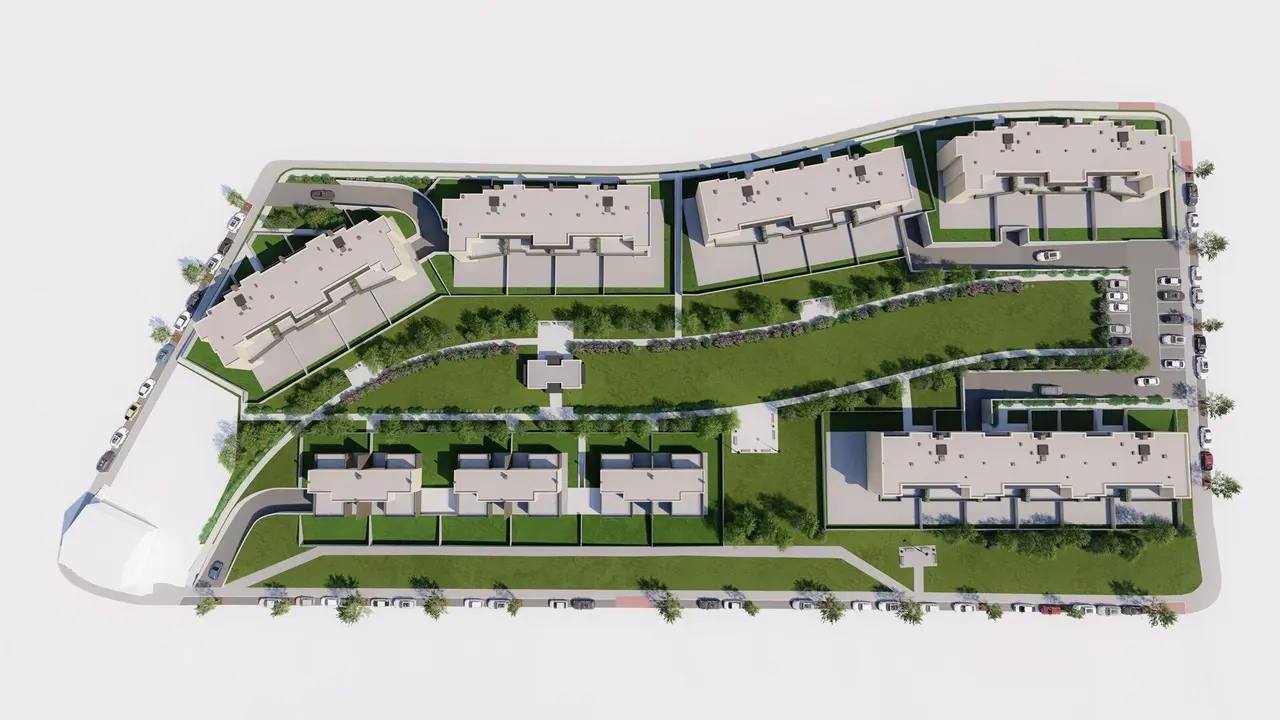 La promoción constará de cinco edificios para un total de 77 viviendas colectivas, con garaje independiente para cada uno de ellos, y seis viviendas unifamiliares pareadas en tres volúmenes, con garaje único de plazas cerradas y acceso directo a cada una de las viviendas.