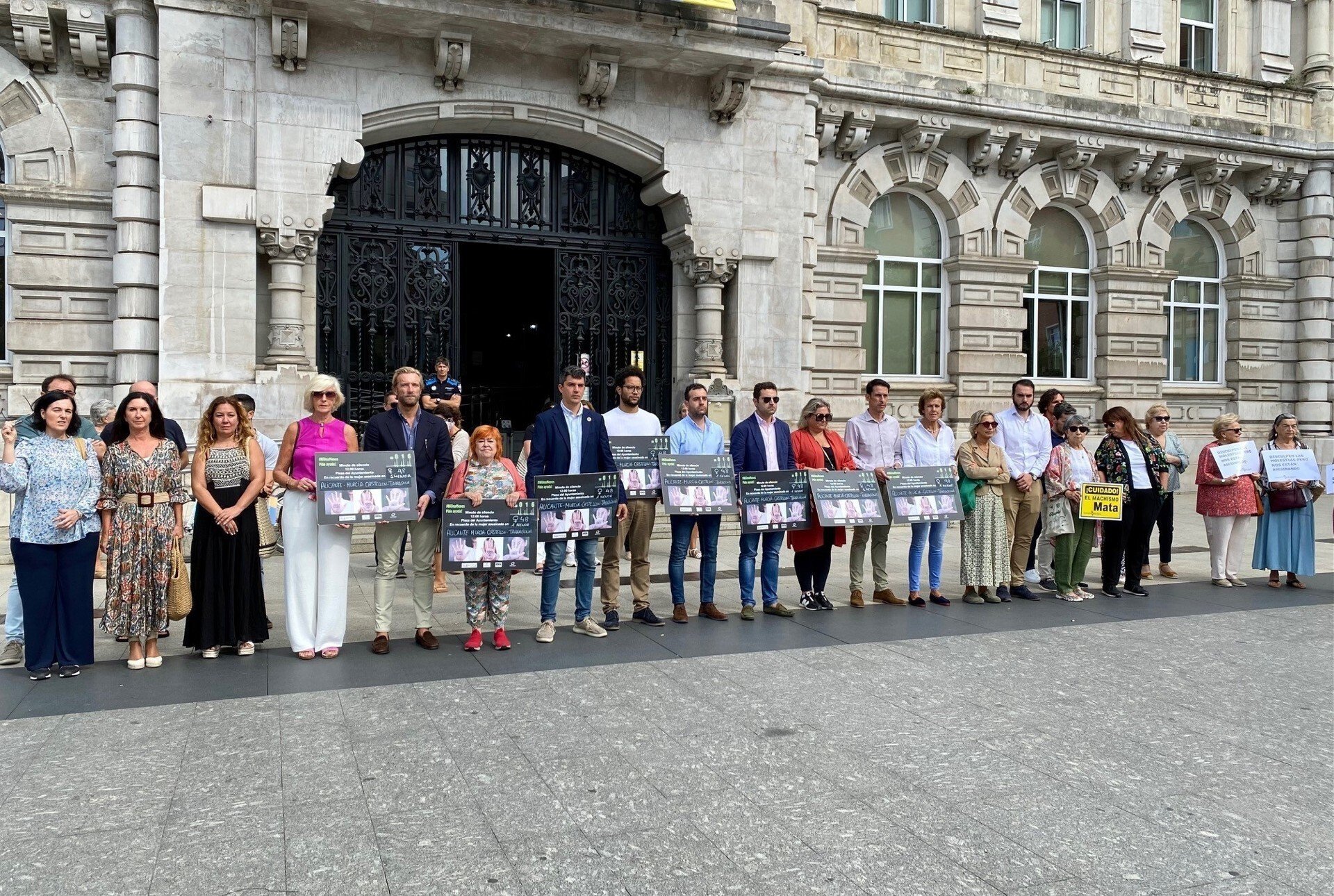 La Plaza del Ayuntamiento de Santander ha acogido este mediodía un minuto de silencio para condenar los últimos cuatro asesinatos de mujeres por violencia de género, en Alicante, Castellón, Murcia y Tarragona.