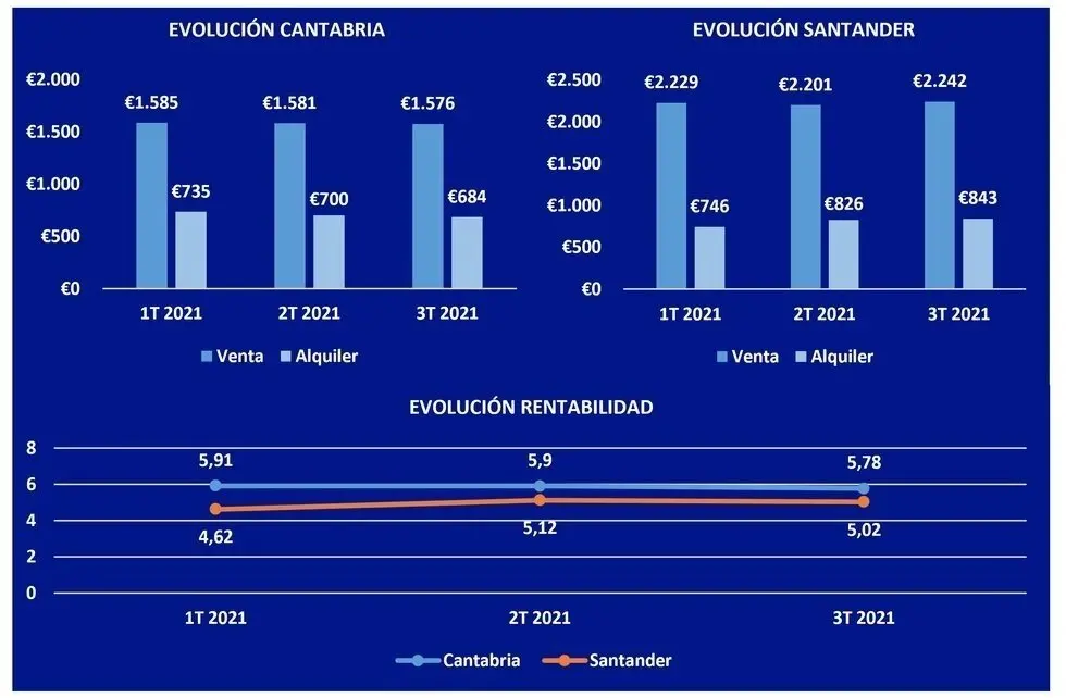 Estos datos suponen un leve descenso del beneficio respecto a los obtenidos en el segundo trimestre. En concreto, la rentabilidad en la capital a finales del segundo trimestre fue de 5,12%, lo que supone una diferencia de una décima, y los resultados de rentabilidad de Cantabria se cifraron en un 5,90%, una décima y dos centésimas más que este año.