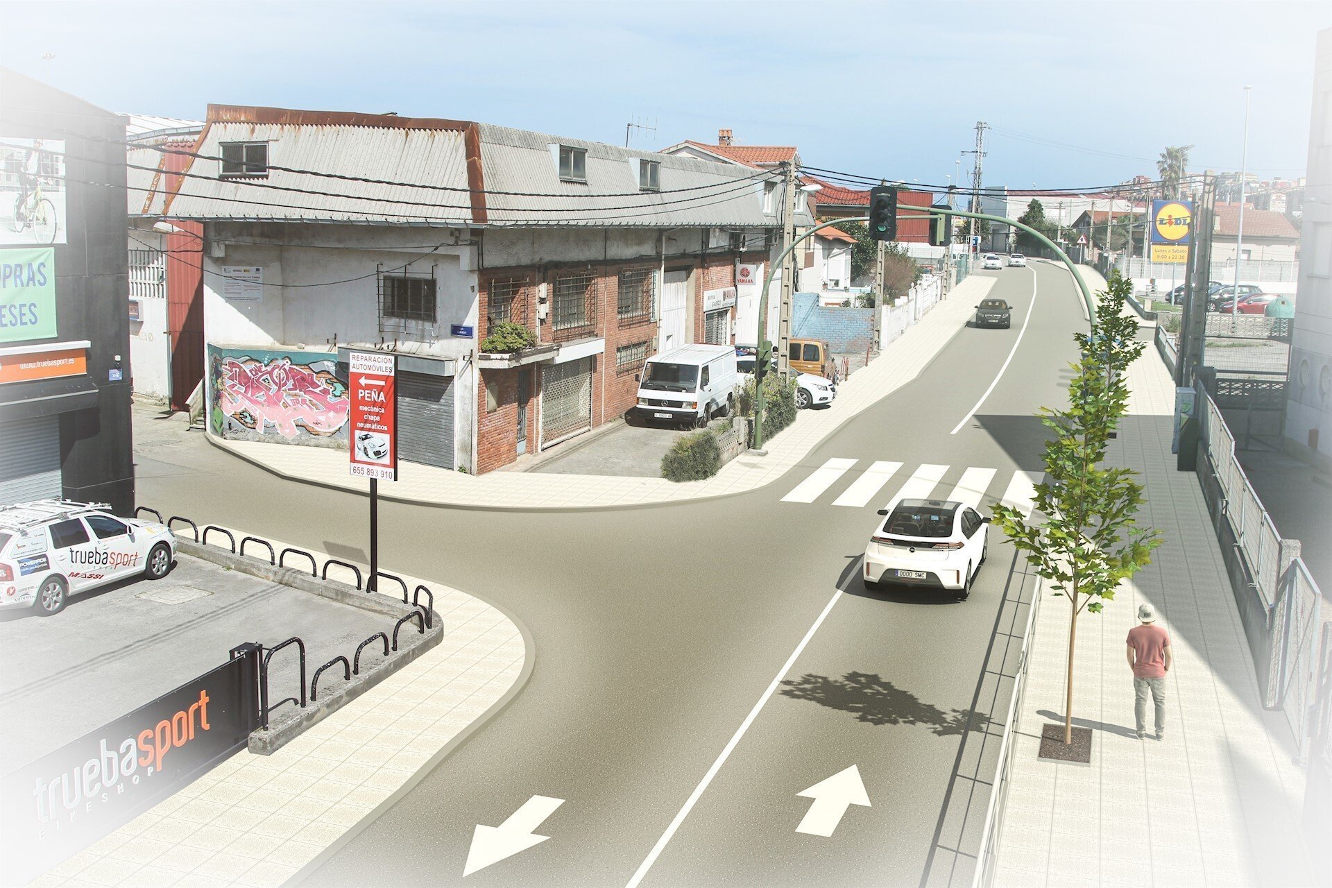Asimismo, se van a crear 11 plazas de aparcamiento, más una para personas con movilidad reducida, reordenando una zona ancha en la que también se introduce una pequeña área verde y bancos. Los pasos de peatones se mantienen en su posición actual, mejorando sus accesos.
