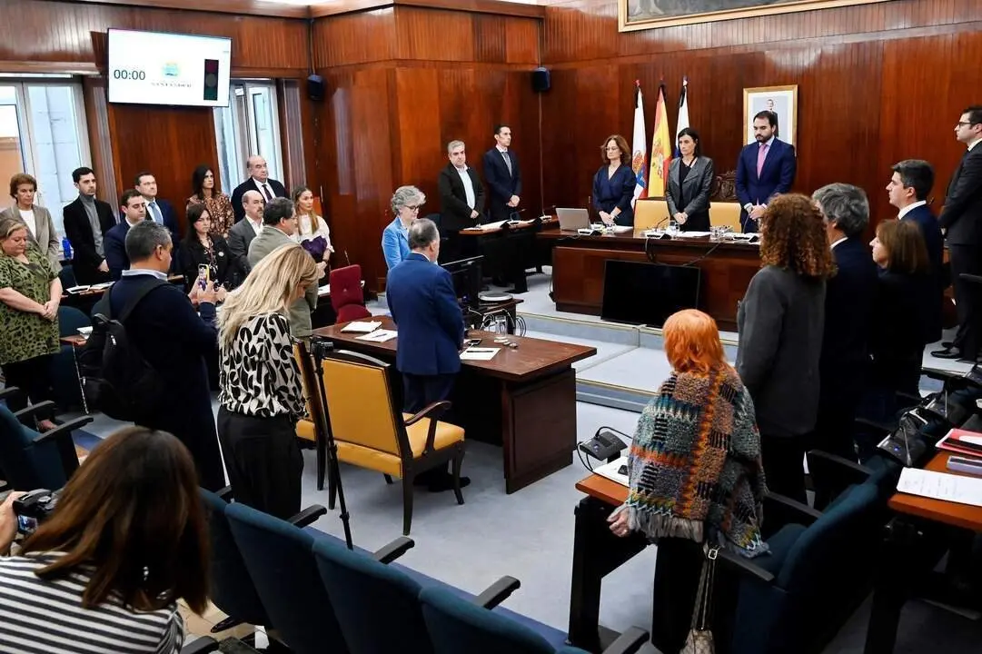La sesión se ha iniciado con un minuto de silencio por las víctimas de las inundaciones en la Comunidad Valenciana, Castilla-La Mancha y Andalucía, así como por las víctimas del derrumbe del edificio de La Albericia.