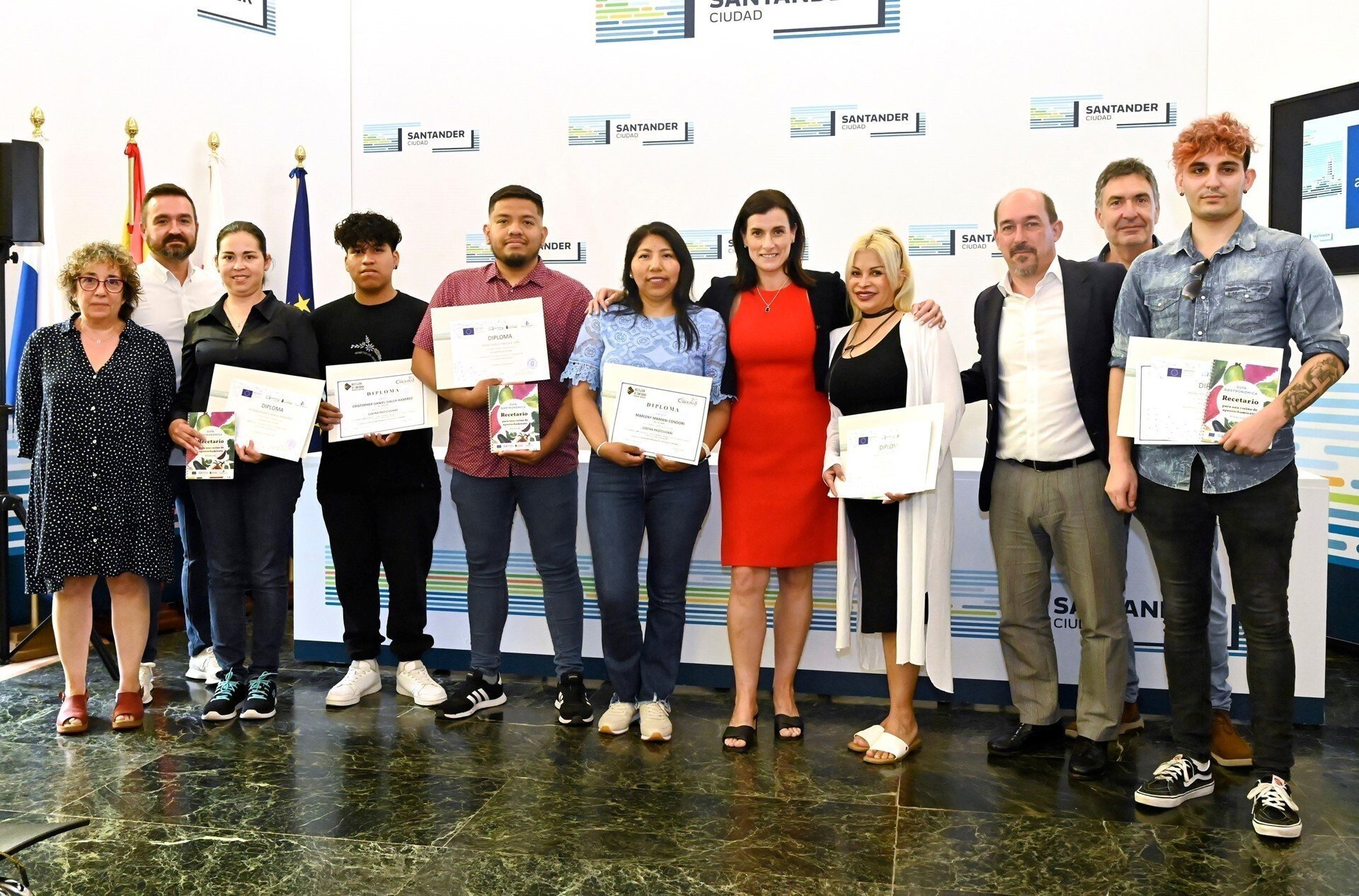 Los alumnos que han finalizado el curso de formación como ayudante de cocina para colectivos vulnerables en Santander, incluido en uno de los proyectos que se están desarrollando en el marco de la convocatoria de Ayudas del Fondo Social Europeo previstas en el Programa Operativo de Empleo, Formación y Educación, han recibido este miércoles sus diplomas.