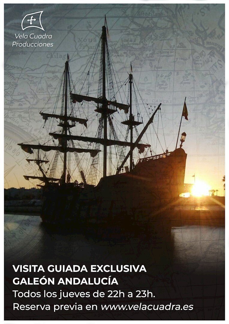 Quienes se acerquen al Galeón podrán conocer cómo eran estos navíos, su historia y las experiencias de su tripulación en sus travesías por el mundo. Para ello, pueden reservar sus entradas, -tanto para las visitas diurnas como nocturnas-, a través de la web www.velacuadra.es.Galeón Andalucía