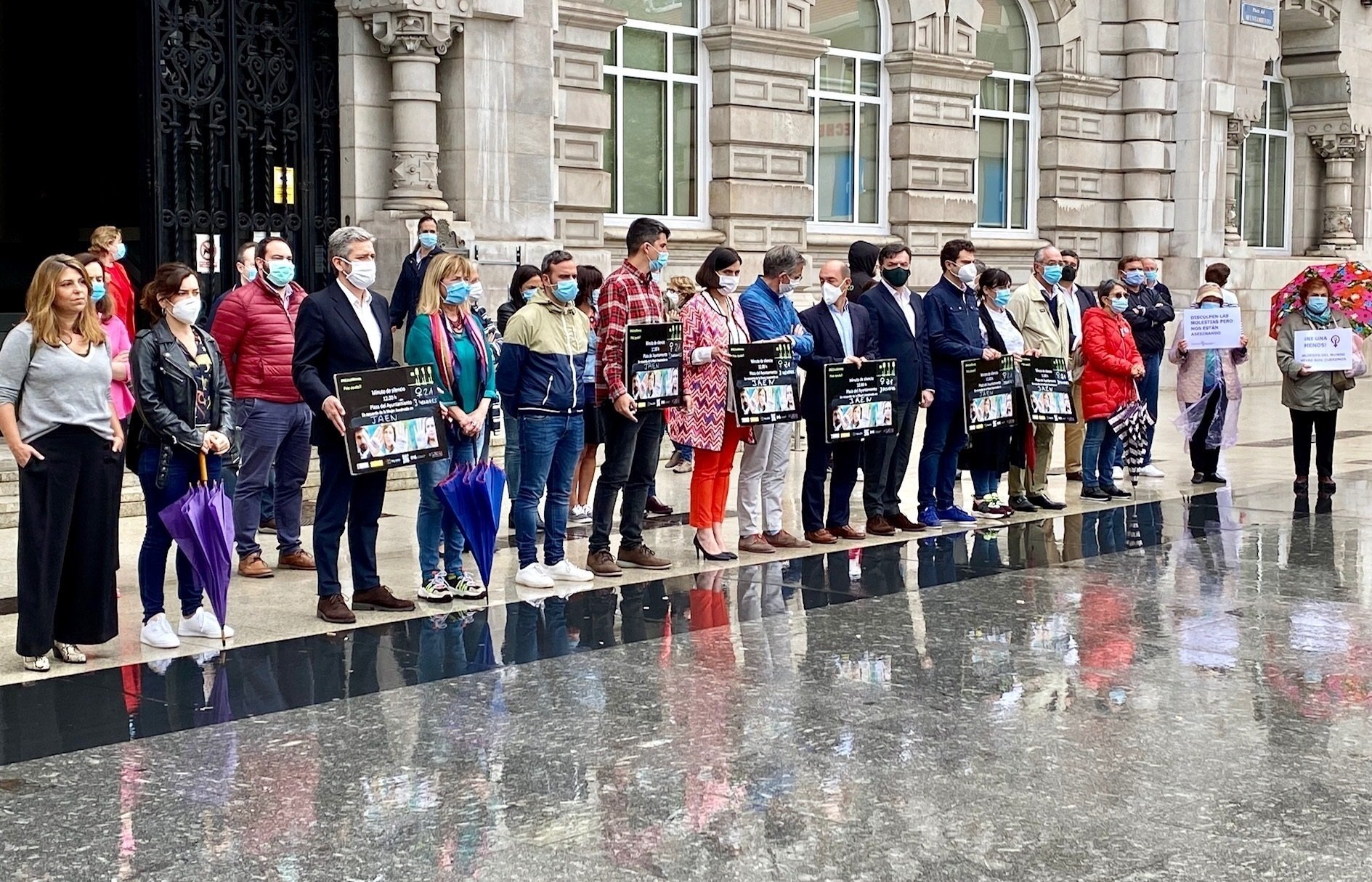 La plaza del Ayuntamiento de Santander ha acogido este mediodía un minuto de silencio para condenar los asesinatos, el pasado día 14, de una mujer de 46 años y de sus dos hijos menores, de 10 y 17, en Úbeda (Jaén) presuntamente a manos de su cónyuge y padre.