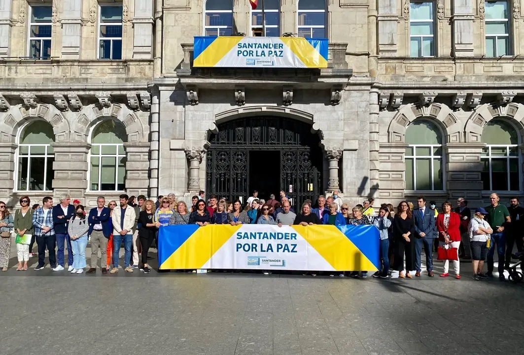 A la concentración, presidida por una pancarta con el lema 'Santander por la paz', han asistido la alcaldesa de la capital, Gema Igual; representantes de la Asociación Ucraniana de Cantabria; y varios concejales y miembros de esta asociación.