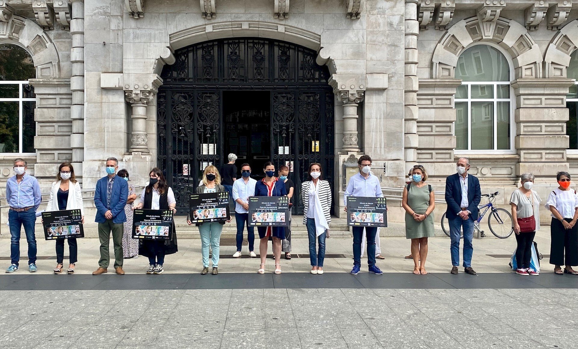 La plaza del Ayuntamiento de Santander ha acogido este mediodía un minuto de silencio en el que han participado miembros de la Corporación municipal, trabajadores y ciudadanos para condenar el último asesinato machista en nuestro país ocurrido en la provincia de Cádiz.