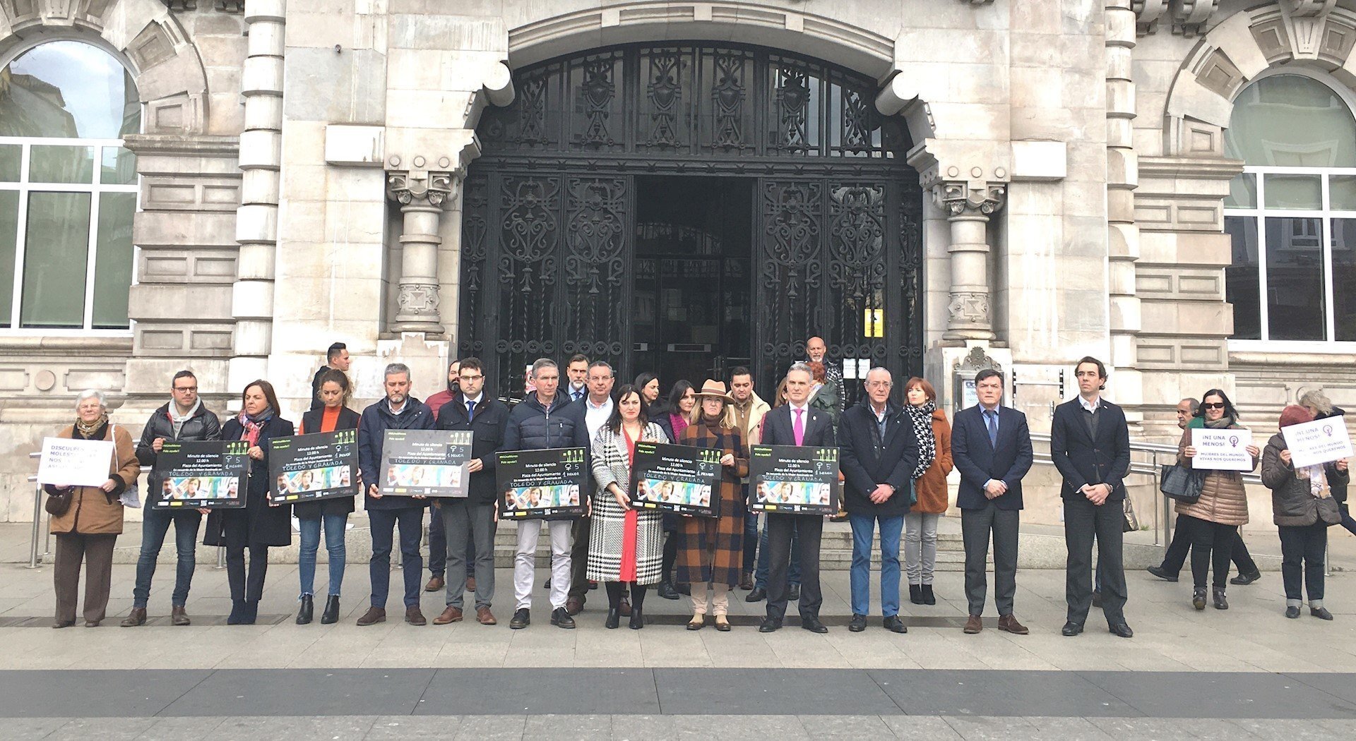 Miembros de la Corporación santanderina, trabajadores y ciudadanos se han concentrado este jueves en la plaza del Ayuntamiento para recordar y guardar un minuto de silencio por las mujeres asesinadas en Toledo y Granada.