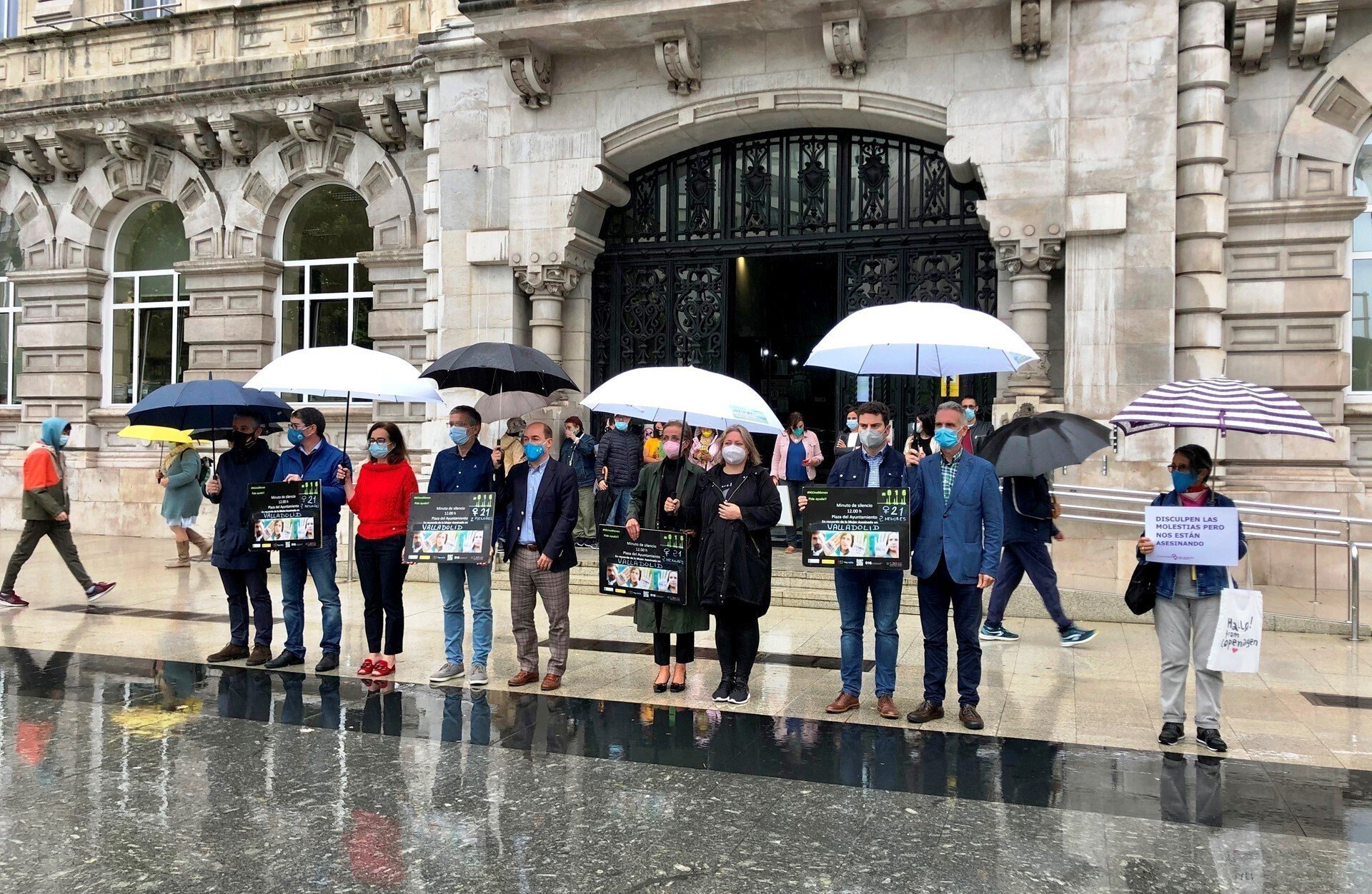 La plaza del Ayuntamiento de Santander ha acogido este mediodía un nuevo acto de repulsa hacia la violencia de género, un minuto de silencio con el que la ciudad ha recordado a la mujer presuntamente asesinada el pasado lunes, 21 de junio, a manos de su cónyuge en Valladolid.
