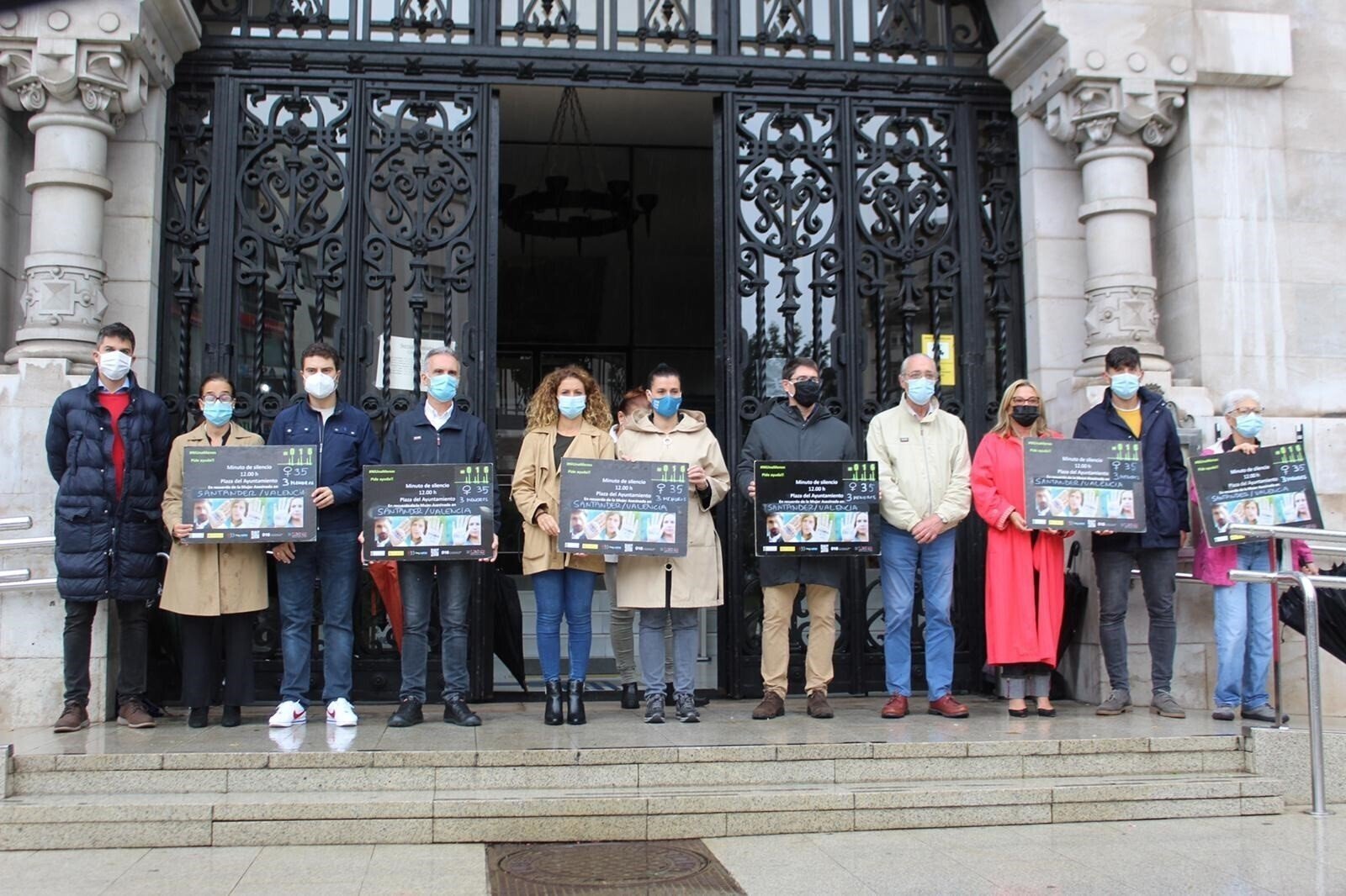 La Plaza del Ayuntamiento de Santander ha acogido este sábado un minuto de silencio en repulsa por la muerte de otras dos mujeres víctimas de violencia de género en España, una de 29 años en Santander y otra de 26 Valencia, lo que eleva la cifra a 35 en este 2020.