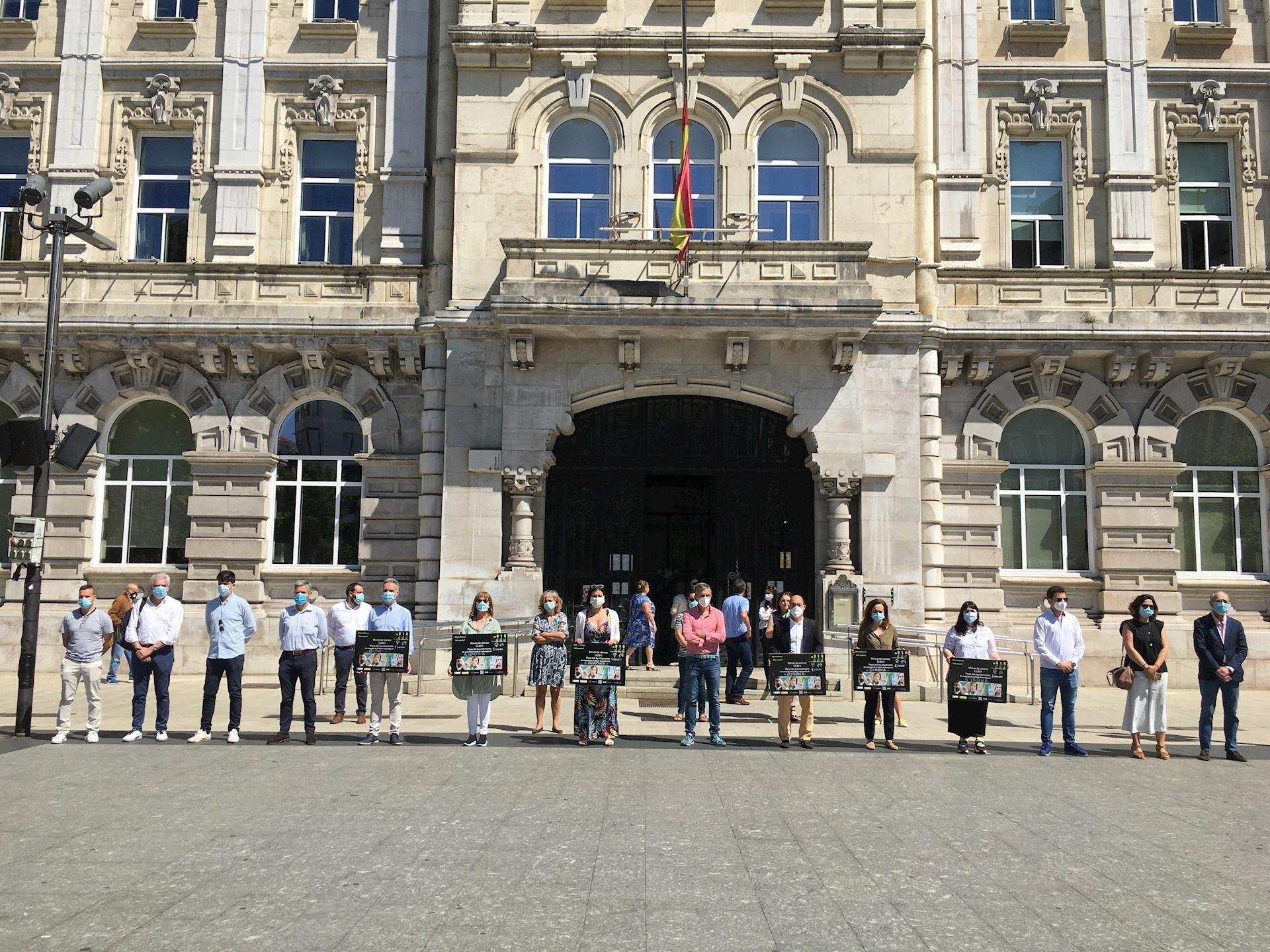 La plaza del Ayuntamiento de Santander ha acogido este mediodía un minuto de silencio en el que han participado miembros de la Corporación municipal, trabajadores y ciudadanos para condenar los últimos asesinatos machistas en nuestro país.