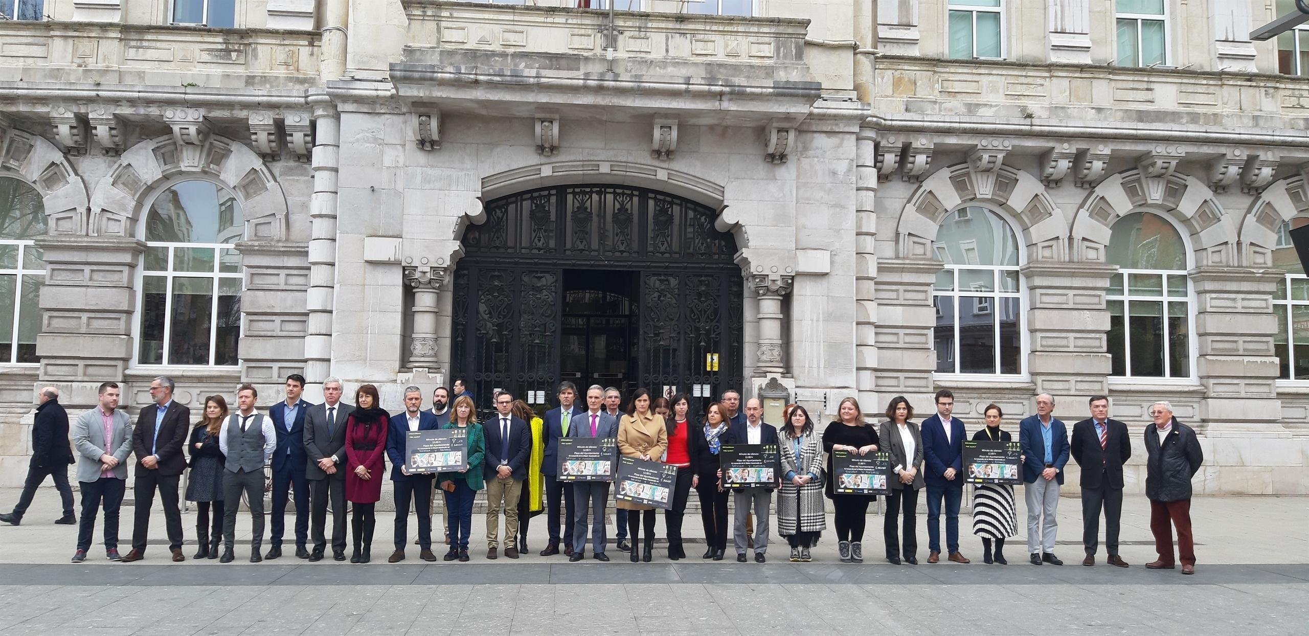 La plaza del Ayuntamiento de Santander ha acogido este mediodía un minuto de silencio en el que han participado miembros de la Corporación municipal, trabajadores y ciudadanos para condenar los últimos asesinatos machistas en nuestro país.