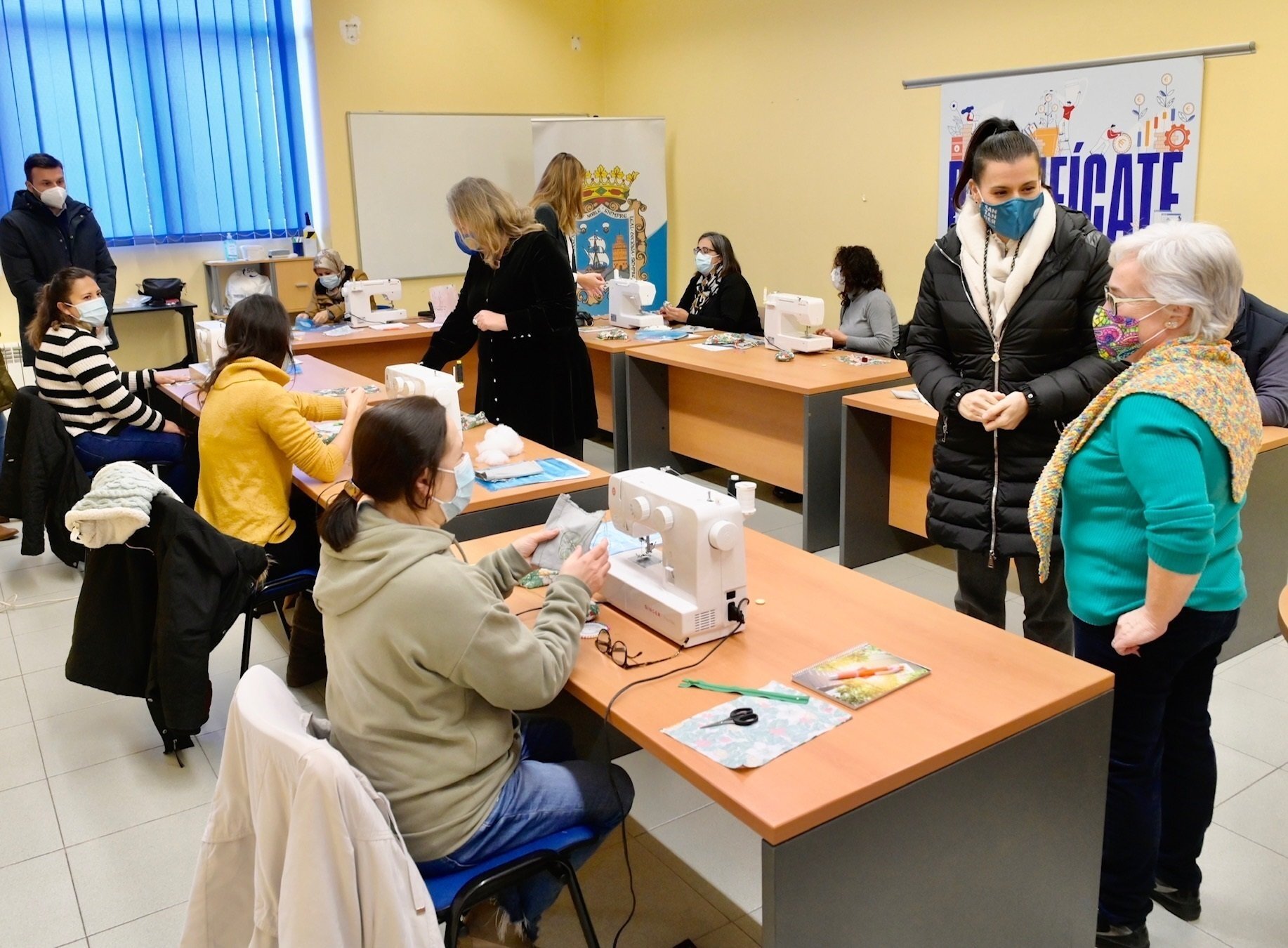 La alcaldesa de Santander, Gema Igual, ha participado este viernes en el primer taller presencial del programa 'Planifícate', en el que una decena de vecinos ha aprendido durante una semana técnicas básicas de costura que podrán aplicar en su día a día para realizar arreglos sencillos.