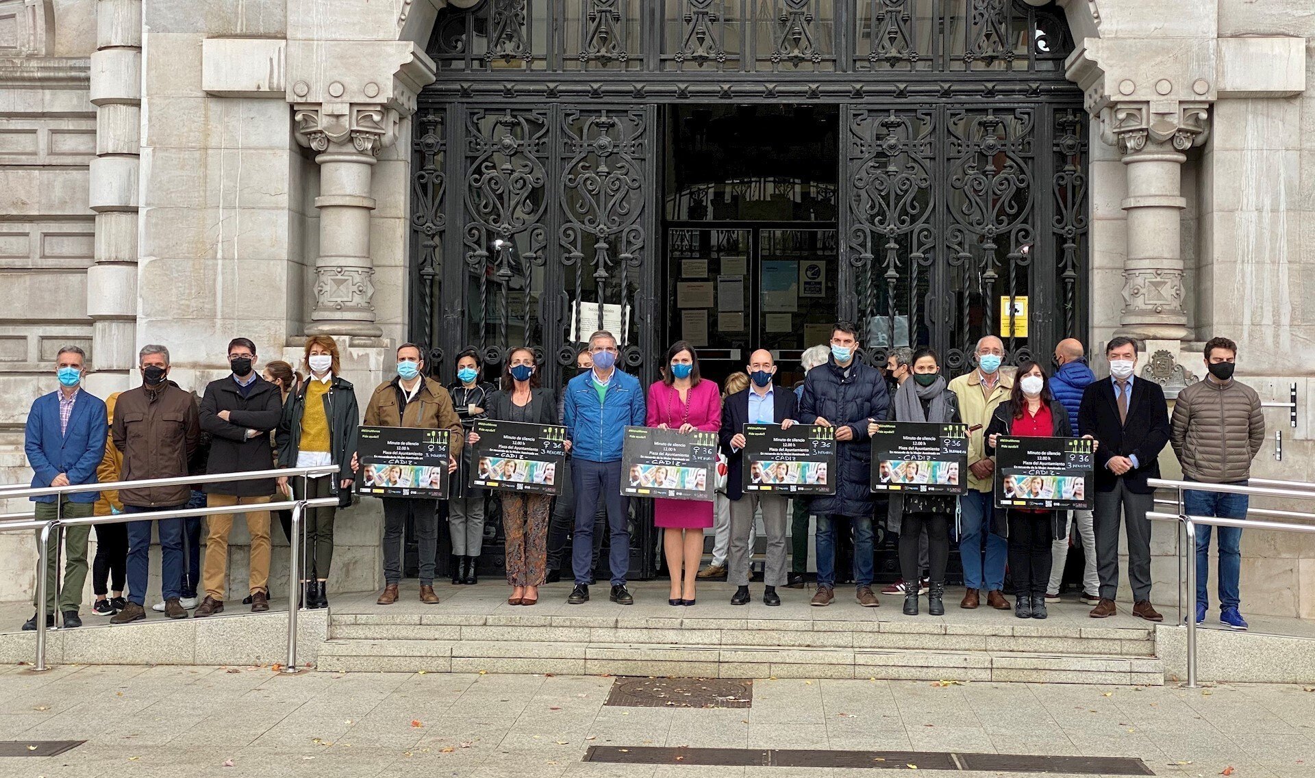 La plaza del Ayuntamiento de Santander ha acogido este mediodía un minuto de silencio en el que han participado miembros de la Corporación municipal, trabajadores y ciudadanos para condenar el asesinato de una mujer en Cádiz.