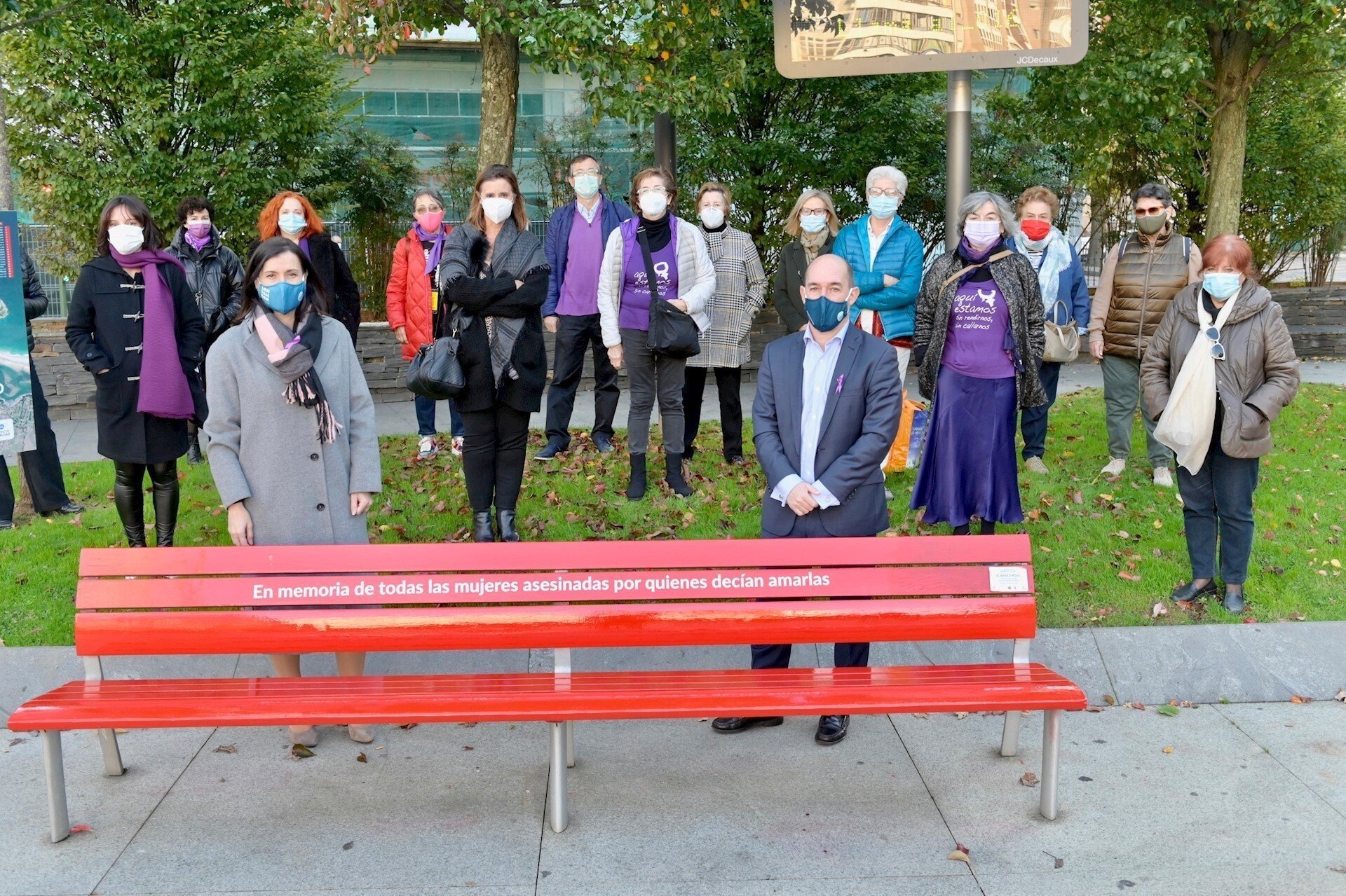 Santander pinta de rojo una veintena de bancos en recuerdo de "las mujeres asesinadas por quienes decían amarlas"