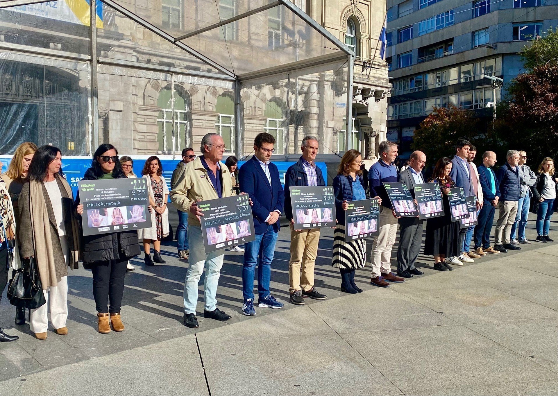 Miembros de la Corporación de Santander, trabajadores y vecinos se han concentrado este jueves en la Plaza del Ayuntamiento para recordar a la mujer asesinada en Málaga y a la mujer y su hija menor de edad asesinadas en Madrid.