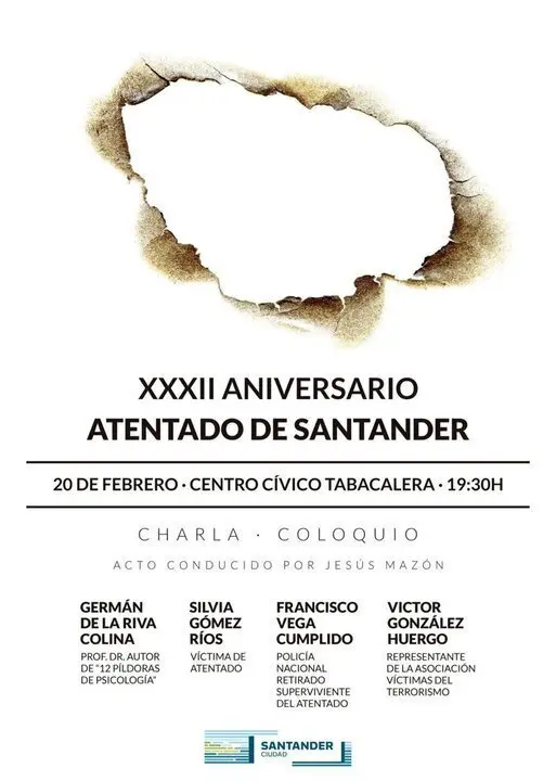 El martes, a las 19.30 horas, el centro cívico de Tabacalera acogerá una charla-coloquio en la que participarán Germán de la Riva Colina, autor del libro '12 píldoras de psicología'; Silvia Gómez Ríos, hija del matrimonio fallecido en Santander; Francisco Vega Cumplido, policía nacional retirado y superviviente del atentado; y Víctor González Huergo, representante de la Asociación Víctimas del Terrorismo.