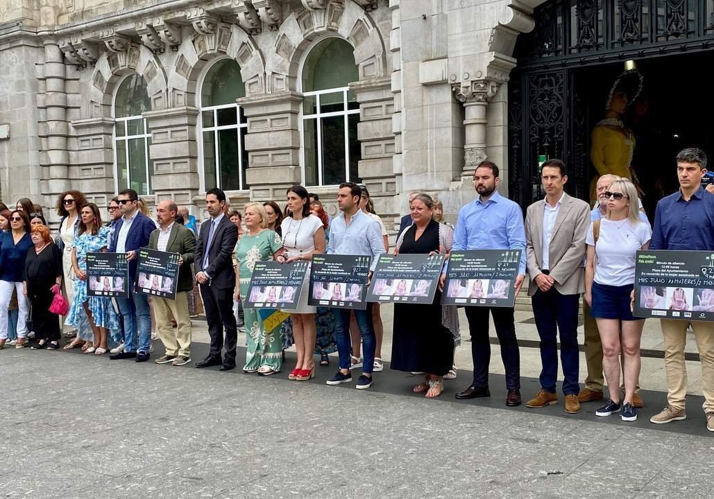 La Plaza del Ayuntamiento de Santander ha acogido este miércoles, un minuto de silencio en memoria de las once mujeres y los dos menores asesinados en España durante el último mes a consecuencia de la violencia de género.