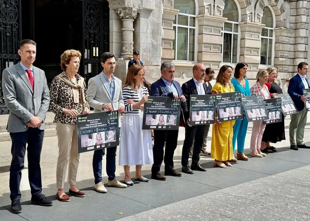 La Plaza del Ayuntamiento de Santander ha acogido este mediodía un minuto de silencio en memoria de las cinco mujeres y los dos menores asesinados en España, víctimas de la violencia de género.