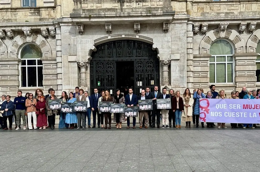 La Plaza del Ayuntamiento de Santander ha acogido este mediodía un minuto de silencio en memoria de las dos mujeres asesinadas en España en lo que va de año víctimas de la violencia de género.
