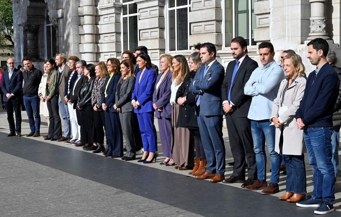 La alcaldesa de Santander, Gema Igual, ha participado en este minuto de silencio celebrado en la plaza del Ayuntamiento al que también se han sumado la presidenta de Cantabria, María José Sáenz de Buruaga, y la presidenta del Parlamento regional, María José González Revuelta, entre otros.