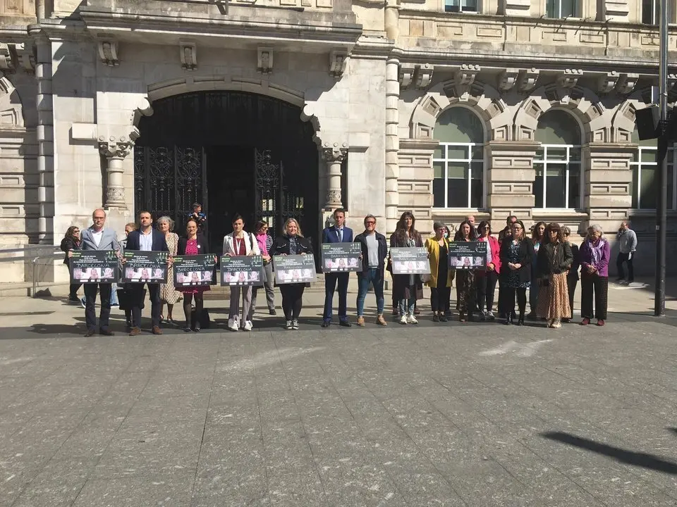 La Plaza del Ayuntamiento de Santander ha acogido este jueves a mediodía una concentración en recuerdo de la mujer y los dos menores asesinados el martes en Barcelona.