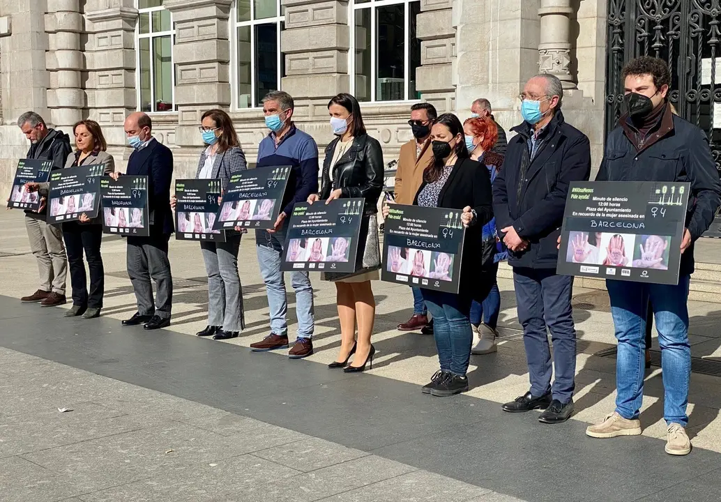La plaza del Ayuntamiento ha acogido este martes un nuevo acto de repulsa hacia la violencia machista con el que la ciudad ha recordado a la mujer asesinada en Barcelona el pasado 19 de febrero.