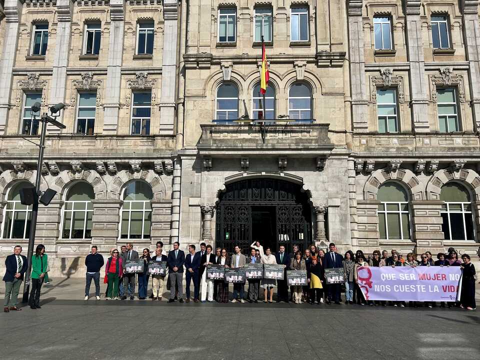 La Plaza del Ayuntamiento de Santander ha acogido este mediodía un minuto de silencio en memoria de las últimas cinco mujeres y una menor de 12 años asesinadas en febrero en España por violencia de género.