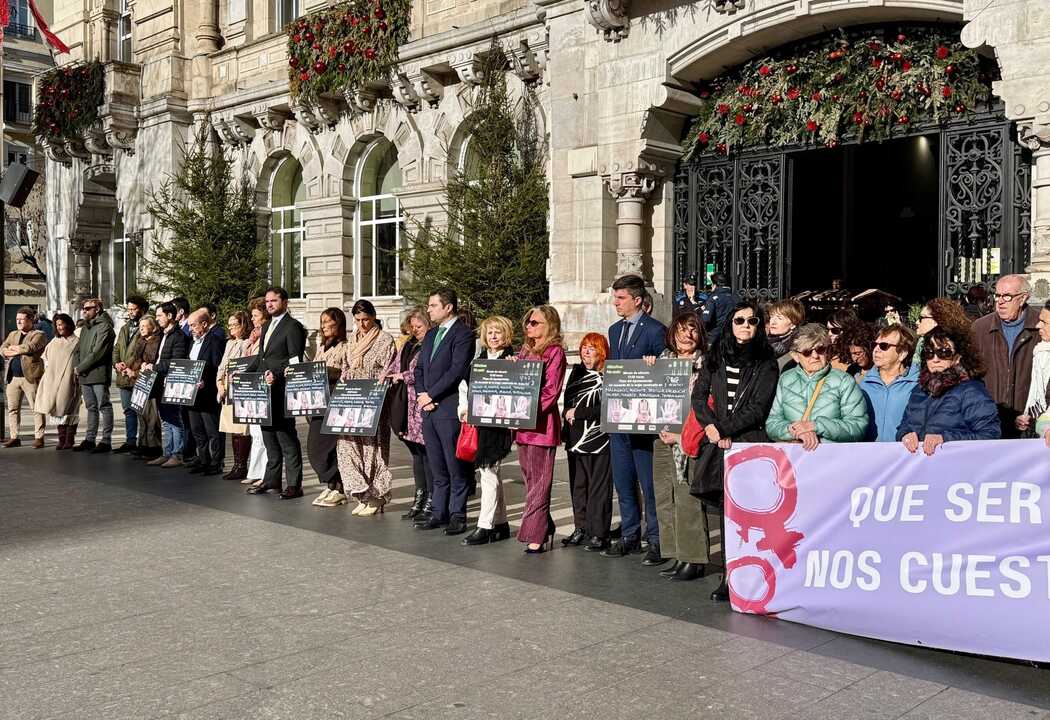La Plaza del Ayuntamiento de Santander ha acogido este mediodía un minuto de silencio en memoria de las últimas nueve mujeres asesinadas en España por violencia de género.