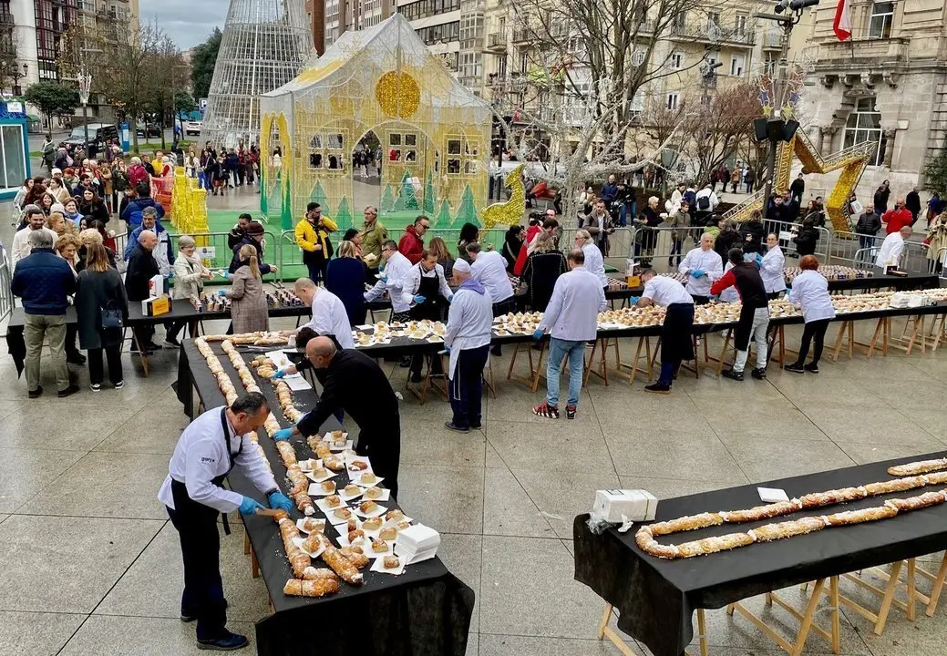 El Ayuntamiento de Santander ha repartido este miércoles más de 1.300 raciones de roscón de Reyes y chocolate, al precio simbólico de 1 euro, para recaudar fondos que se destinarán a apoyar la labor social que desarrolla la Asociación para la Organización de la Cabalgata con familias necesitadas del municipio.