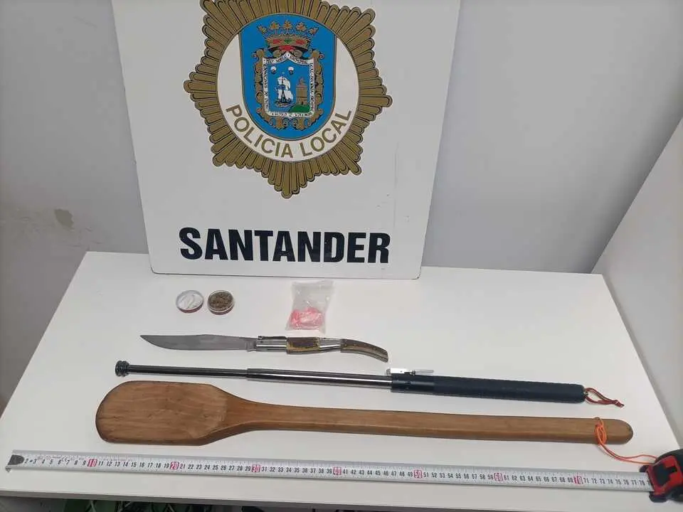 Durante la intervención, los agentes le incautaron una cuchara de madera, una navaja, la defensa extensible utilizada en la agresión, un envase metálico con marihuana y un envoltorio con unos 8,5 gramos de cocaína.