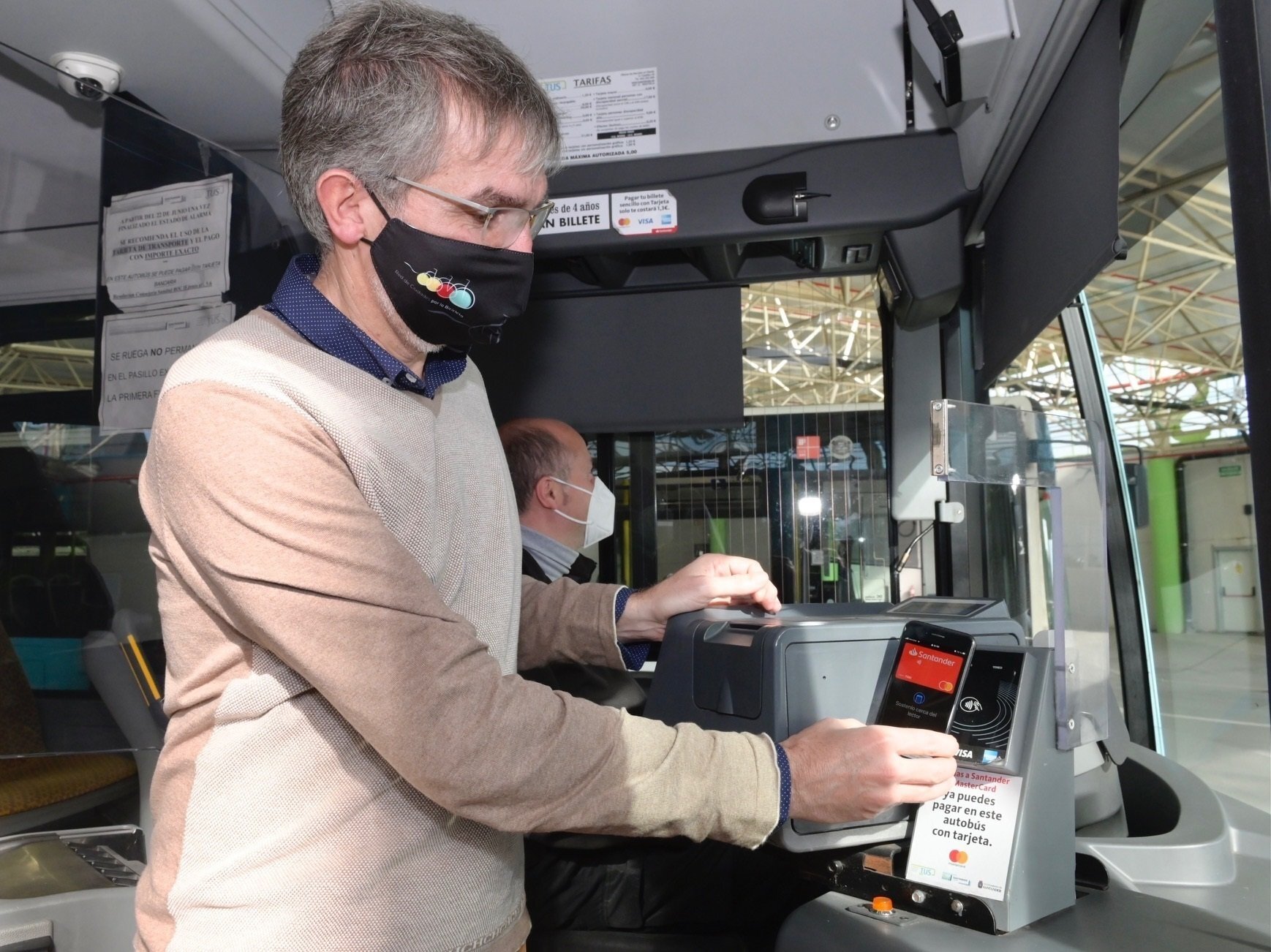 Toda la flota de autobuses del servicio municipal de Transporte Urbano de Santander (TUS) estará equipada "en los próximos días" con tecnología para el pago 'sin contacto' gracias al acuerdo entre el Ayuntamiento, Banco Santander y Mastercard.