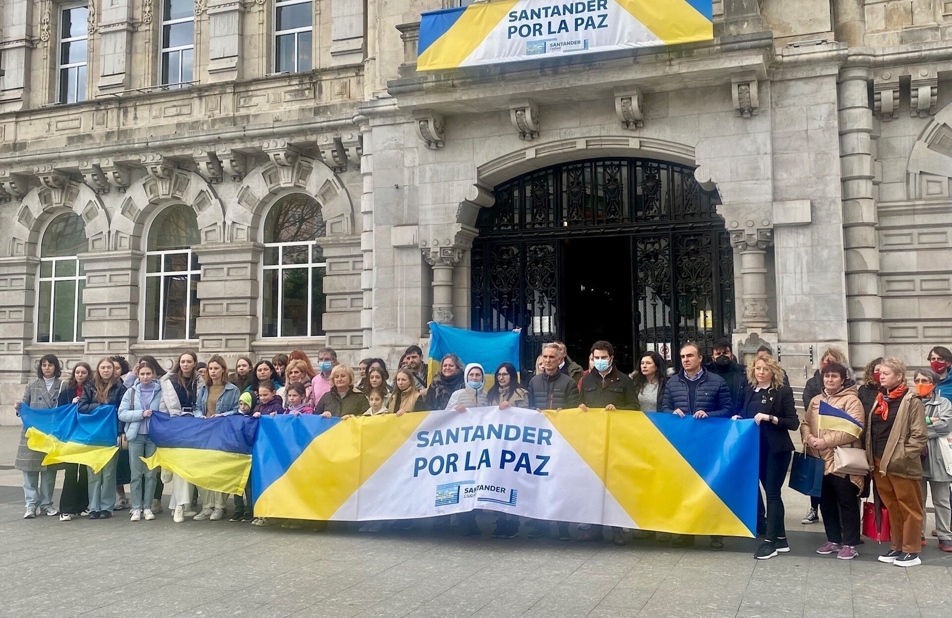 La plaza del Ayuntamiento de Santander ha acogido esta mañana un minuto de silencio para condenar la guerra y trasladar la solidaridad y el apoyo de la ciudad al pueblo ucraniano, que pide a los ciudadanos que "no se enfríen" y sigan aportando ayuda en la medida de sus posibilidades.