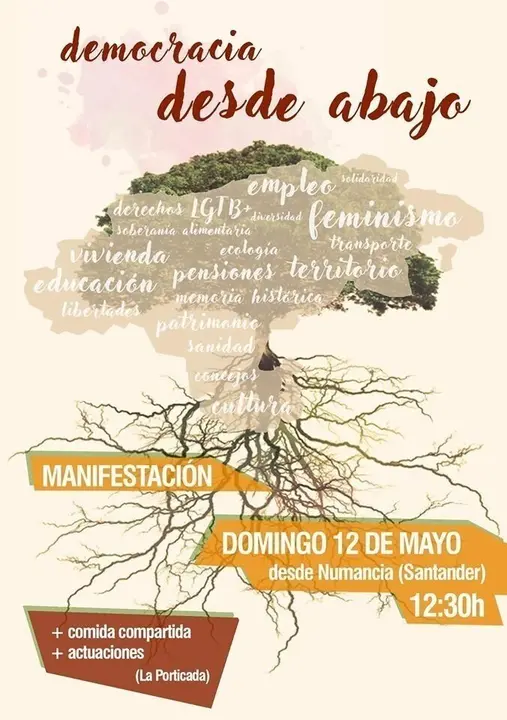 Diversos colectivos sociales de Cantabria han convocado para este domingo, 12 de mayo, coincidiendo con la próxima celebración del octavo aniversario del movimiento 15M, una manifestación en Santander para construir "democracia desde abajo".