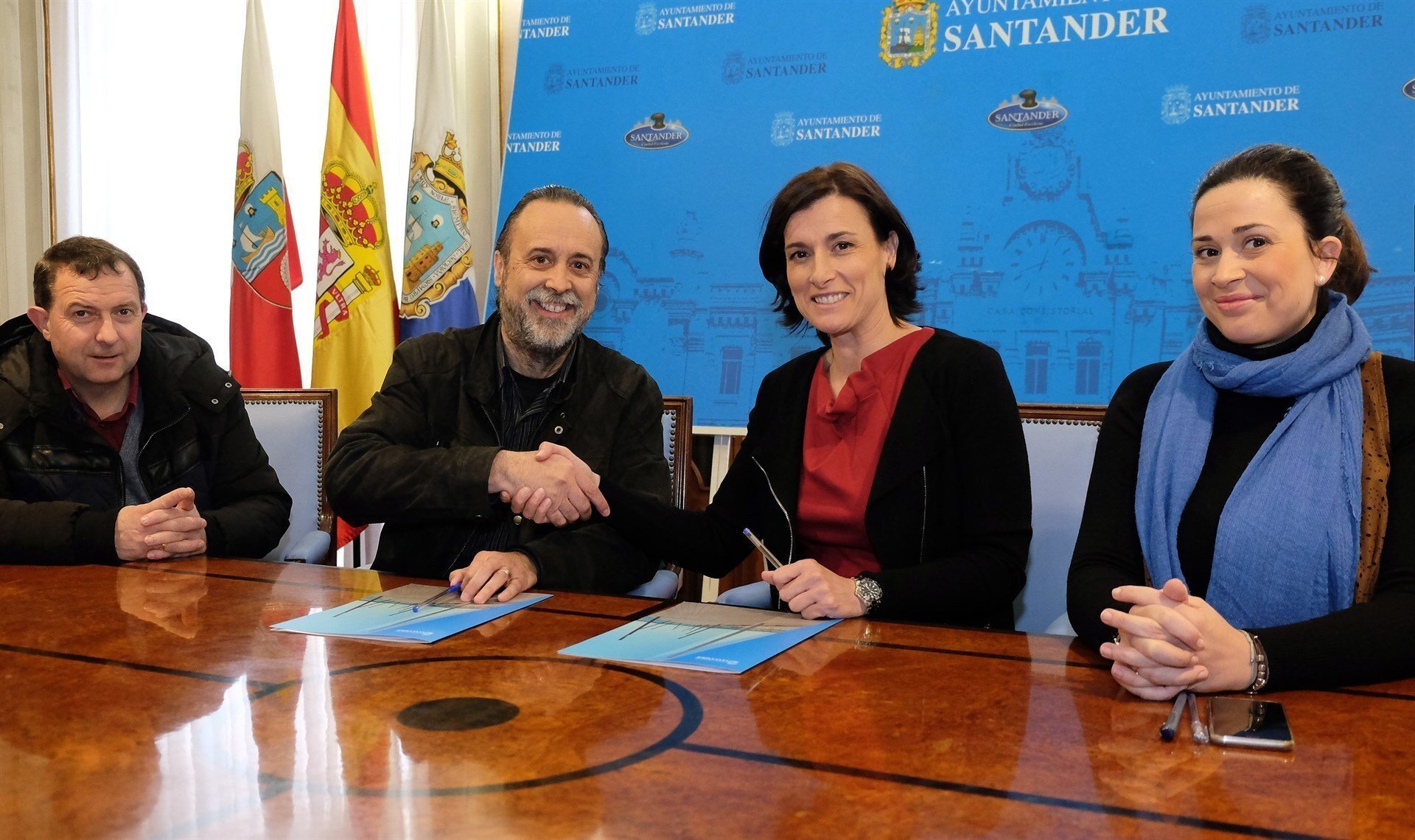 La alcaldesa de Santander, Gema Igual, y el presidente del Gremio de Editores de Cantabria, Jesús Herrán, han firmado un convenio de colaboración que busca potenciar la proyección del libro y los escritores cántabros, estimulando la venta de libros publicados por empresas de la región. En virtud de este acuerdo, el Ayuntamiento destinará un porcentaje de la partida presupuestaria anual de adquisiciones bibliográficas a la compra de libros publicados por editoriales locales para que estén presentes en todas las bibliotecas de la red municipal. Además, el Consistorio se ha comprometido con los editores cántabros a organizar conferencias, presentaciones y encuentros con autores locales de Cantabria tanto en bibliotecas como centros culturales y otros espacios municipales, para favorecer un mayor conocimiento de los escritores de la región por parte de los vecinos. El Gremio de Editores promocionará a su vez la actividad de la ciudad, especialmente la oferta cultural y turística, en todos los actos y eventos a los que asista fuera de Cantabria, a través de material divulgativo sobre los principales atractivos y eventos de interés de Santander. Igual ha destacado la labor que desarrolla el Gremio de Editores de Cantabria en la defensa de los intereses profesionales de las editoriales de la comunidad y la promoción del libro hecho en Cantabria, y ha asegurado, que esta iniciativa se enmarca en la apuesta del Ayuntamiento por la promoción de la lectura, "estimulando y reconociendo a los creadores y apoyando la difusión y promoción de la creación literaria". Para la alcaldesa, este nuevo acuerdo es un paso más en la labor que viene realizando el Ayuntamiento en favor de la lectura y la creación literaria, potenciando y mejorando la organización de los premios literarios, apoyando eventos como la Feria del Libro, animando a los más jóvenes a acudir a las bibliotecas y mejorando el uso de estas instalaciones por parte de los adultos y optimizando los servicios e instalaciones de la red de bibliotecas del municipio.