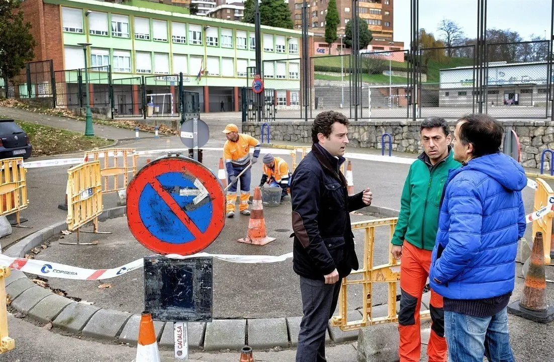 El concejal de Educación, Daniel Portilla, ha visitado hoy las obras para comprobar el estado de los trabajos, que incluyen la ejecución de una pequeña glorieta y la instalación de un nuevo paso de peatones.